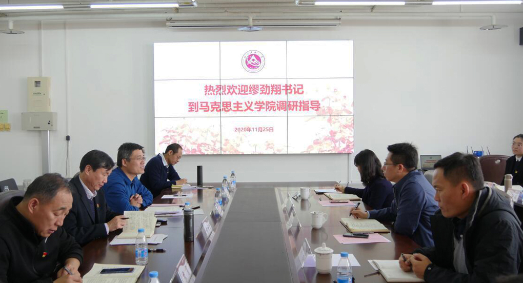 11月25日上午,党委书记缪劲翔到马克思主义学院调研,专题听取了马院和思政课建设情况汇报,并与全体思政课教师进行了深入沟通交流。缪劲翔认真听取了马院院长袁本文和副院长张茂林的工作汇报。他结合党的十九届五中全会精神,立足学校和学院“十四五”发展规划考量,从党建与思想政治教育、思政课改革创新、教师队伍建设、学科发展以及服务社会能力等方面和马院干部教师进行了沟通交流。他指出,马克思主义学院地位重要,...