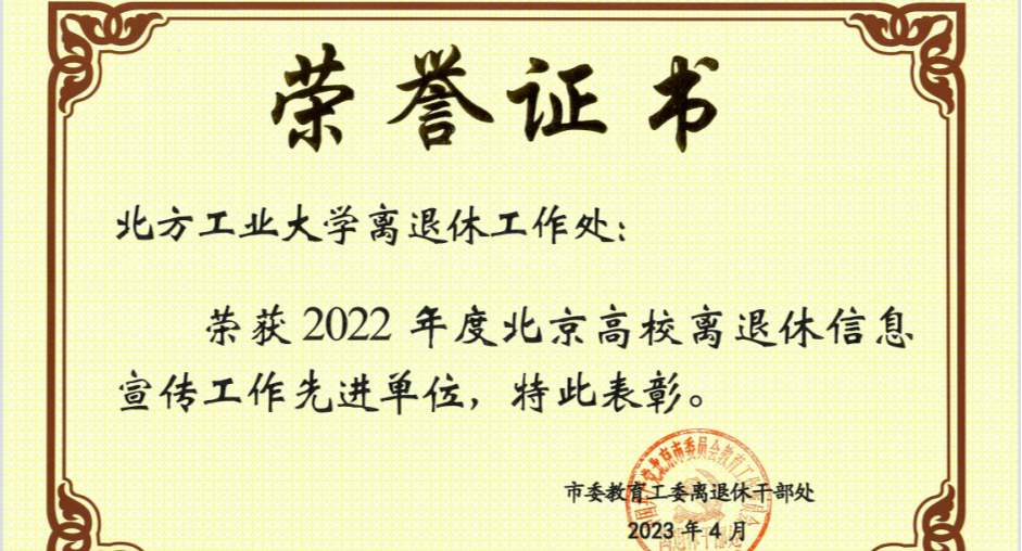 日前,在2023年北京高校离退休工作部门负责人会议上,365官网离退休工作处被评为“2022年度北京高校离退休干部信息宣传工作先进单位”。离退休工作处在学校党政的领导下,结合实际认真开展信息宣传工作,坚持把政治建设摆在首位,注重加强思想政治引领和党组织建设,扎实开展正能量活动,引导全校离退休教职工发挥积极作用。围绕“喜迎二十大”开展系列活动,积极组织学习宣传党的二十大精神;参加“读懂中国”活动,树立典型、挖...