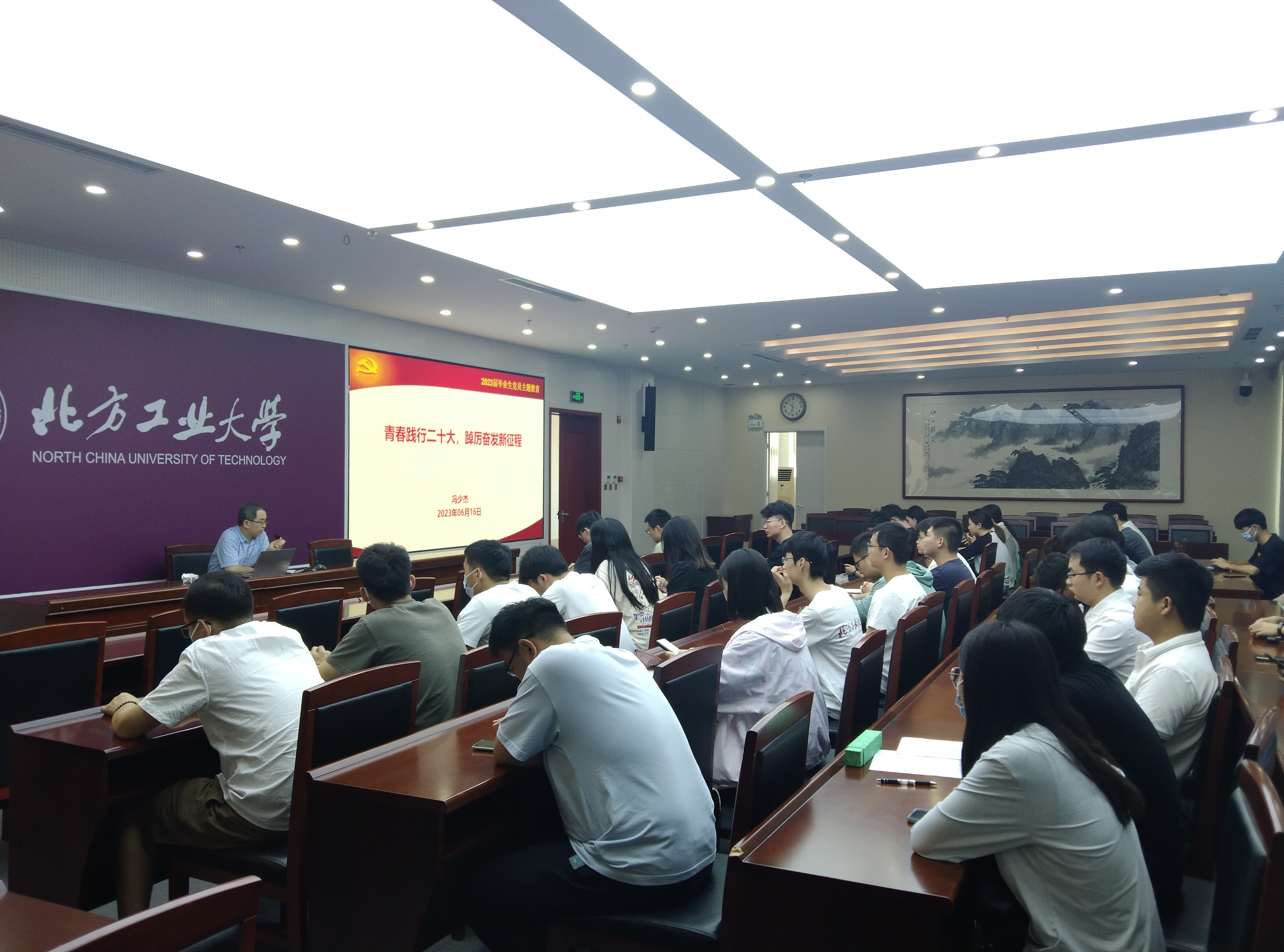 6月16日,土木工程学院在浩学楼15层报告厅召开2023届级毕业生党员大会,学院党委副书记冯少杰以“青春践行二十大,踔厉奋发新征程”为题为毕业生党员上党课。冯少杰带领大家重温入党誓词,学习习近平总书记对当代青年发表的重要讲话精神,并对毕业生党员提出四点希望和要求:一是尽快完成角色转换,适应工作新环境;二是始终牢记党员身份,持续踔厉奋发;三是以梦为马,不负韶华;四是牢记初心使命,争做新时代合格党员。要讲政...
