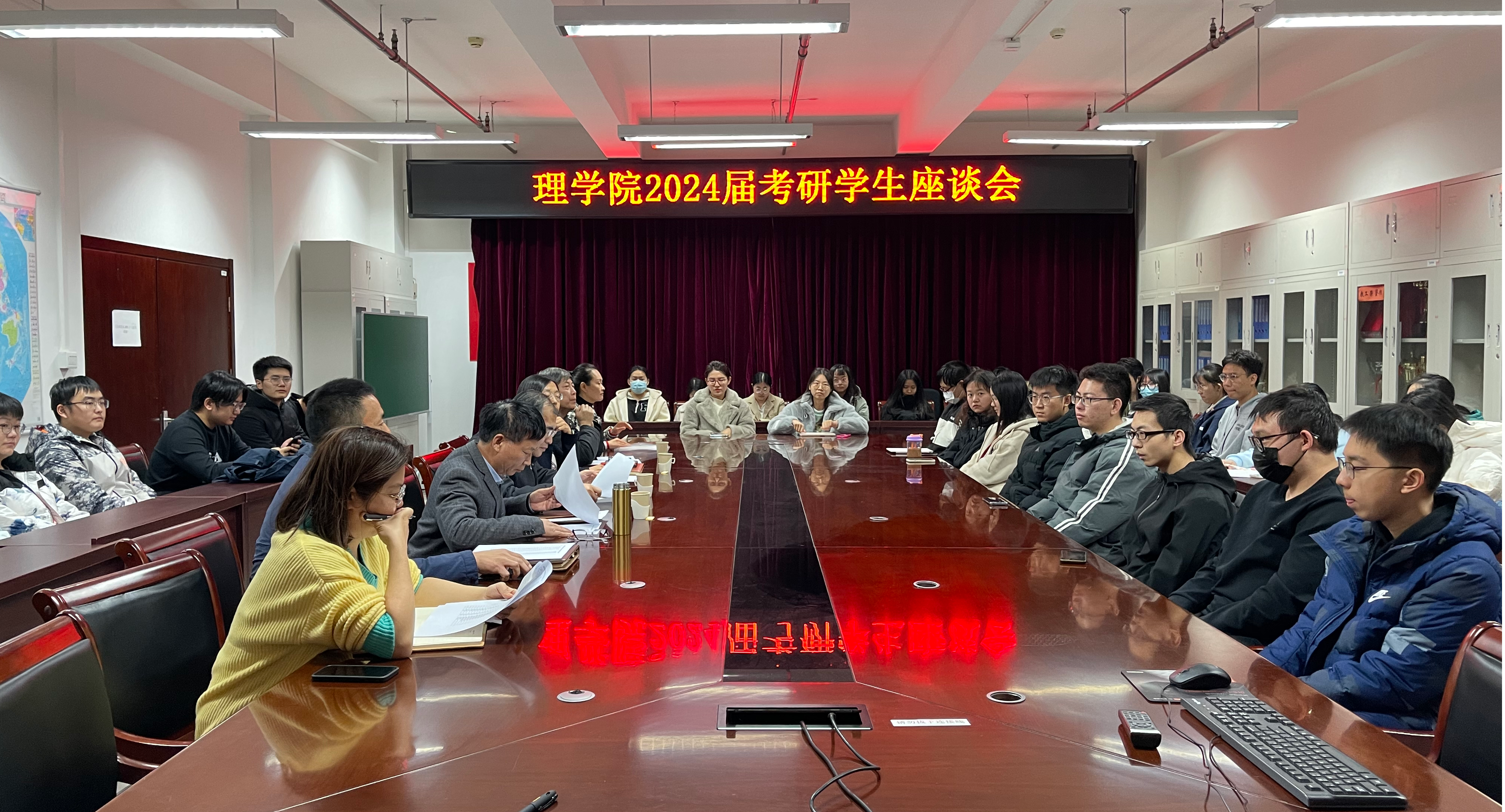 11月21日上午,理学院举办2024届考研学生座谈会。学院班子成员、系主任、毕业班辅导员和2024届考研学生等50余人参加了座谈会。学院党委副书记贺映勇向同学们介绍了本次座谈会的主题,学院每年在硕士研究生入学考试冲刺前一个月的时候,通过座谈会的形式,深入了解考研学生备考状况,并针对考研学生在思想、学习、生活等方面存在的困惑与难题,结合同学们所报的学校与专业,为同学们提供更为精准的帮助与指导。座谈会上,考研学...