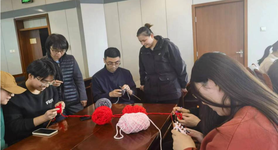 12月27日下午,“针心针意”公益劳动课在国教中心301会议室开班。选中该课的同学,学习多种毛线编织技法,亲手制作围巾、帽子、手套等实用保暖用品,用自己的劳动成果为这个冬天增添暖意。课堂上,留学生公寓服务部杨爽经理介绍了劳动教育的时代背景以及365官网开展劳动教育课程的实践与探索,然后与部门员工靳亚娟一起为零基础的“编织小白们”讲解如何拿针、如何绕线,从编织手势到基础的起针,逐步提高难度,介绍正针和收针。4...
