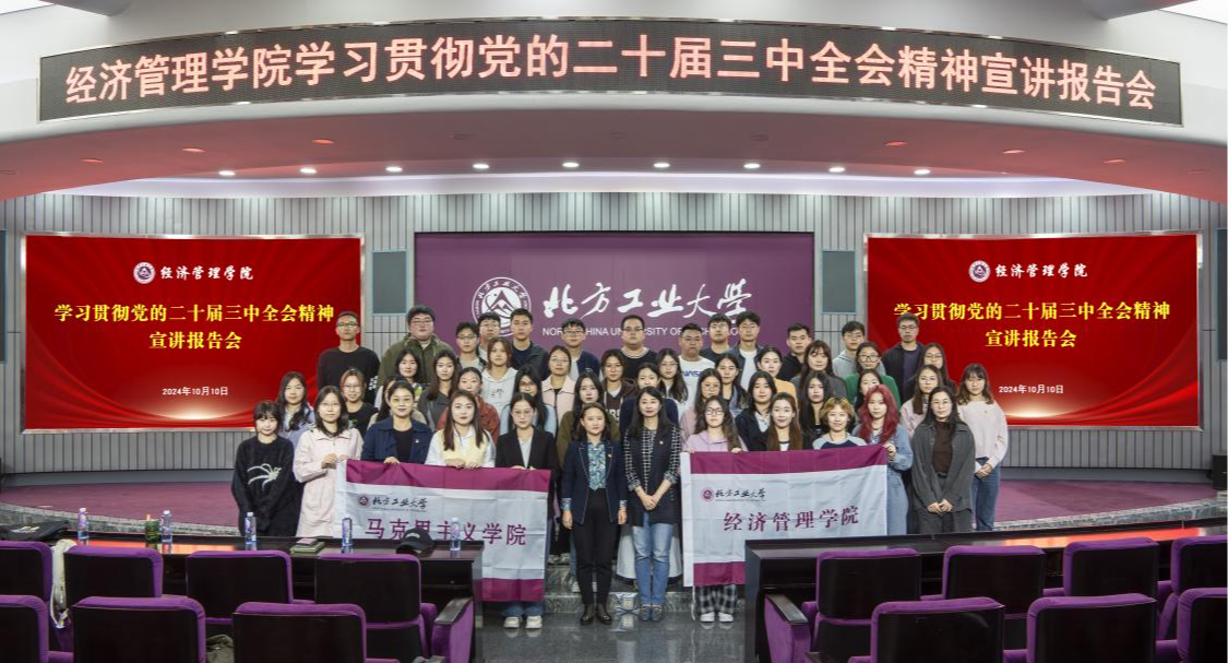 为深入学习贯彻党的二十届三中全会精神,推动引领学院青年学生全面理解和把握全会的精神实质和核心要义,结合“‘京’彩文化青春绽放”行动计划的“信仰行”活动,10月10日,经济管理学院学习贯彻党的二十届三中全会精神宣讲报告会在广学楼报告厅举行。学院专门邀请马克思主义学院宣讲团成员,为学院近300名学生党员、入党积极分子带来一场精彩的视听盛宴。学院党委副书记王帏主持报告会。宣讲报告会上,马克思主义学院副教授张...