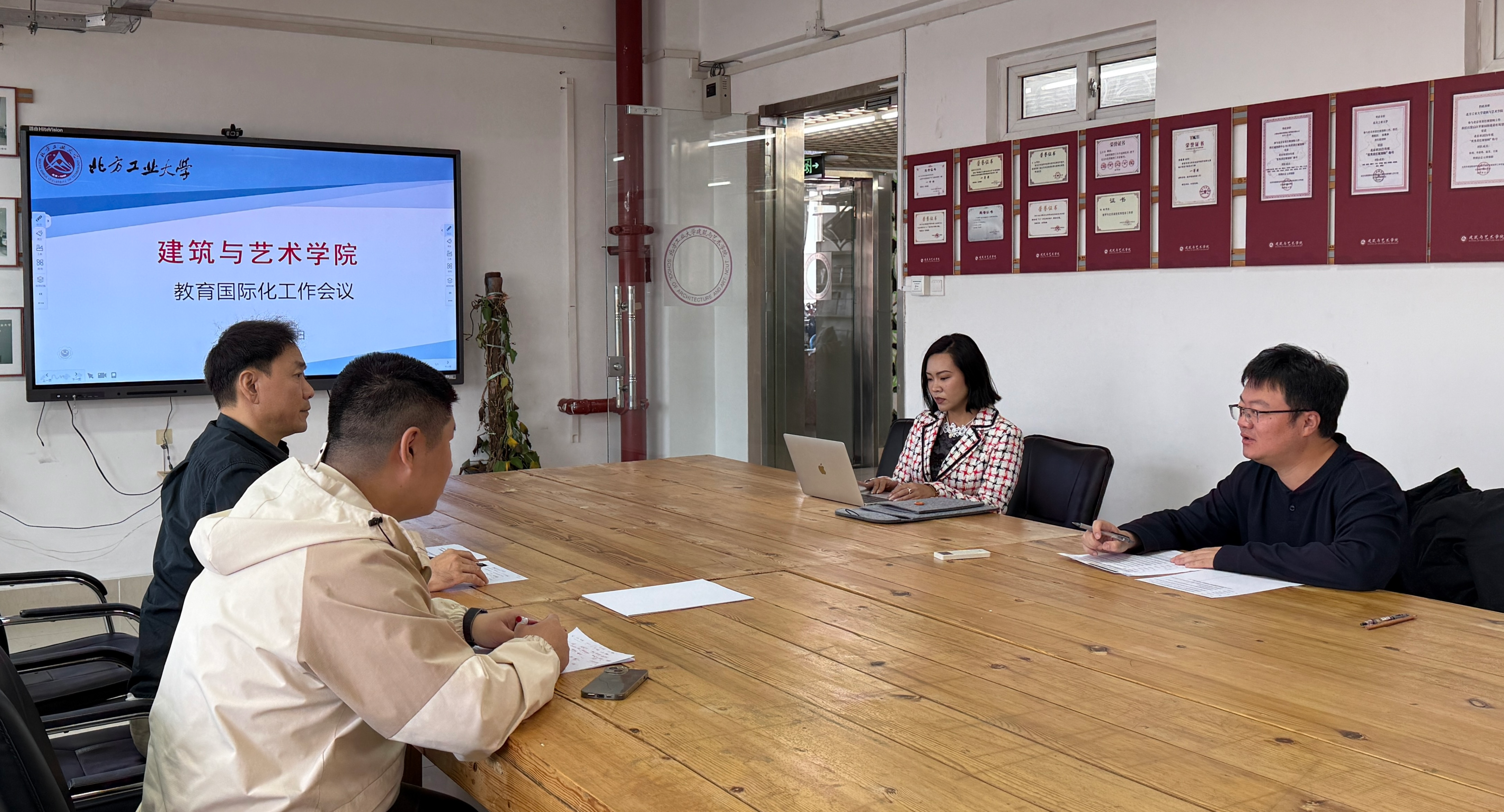 10月12日上午,建艺学院在浩学楼1207召开教育国际化工作专题会议,讨论与德国柏林工业大学推进建筑学专业中外合作办学项目事宜。国际学院宋伟副院长参加会议,帮助解读了近期教育部、市教委关于中外合作办学项目的相关政策。学院党委书记张勃、专业教师黄骁然(在国际合作与交流处挂职副处长)、国际教育事务秘书严可馨等参加了会议。会议还讨论了学院留学生教学管理相关内容。会议气氛热烈,高效有序,各抒己见,为下一步学院...