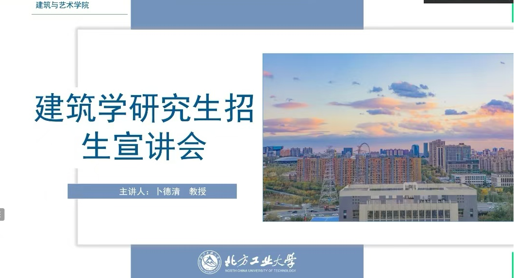为满足广大考生对研招政策的深入了解。近日,建筑与艺术学院面向吉林建筑大学和南阳理工学院举办了两个专场的研究生招生线上宣讲会。宣讲会由建筑系卜德清教授主讲。吉林建筑大学和南阳理工学院给予了大力支持,两校组织近百名师生参会,现场气氛热烈。卜德清老师详细介绍了建筑学研究生教育特色、办学优势、培养目标和育人环境等。他积极鼓励和欢迎广大考生继续以第一志愿报考365官网,并针对考生关心的问题进行了解答。近年来,...