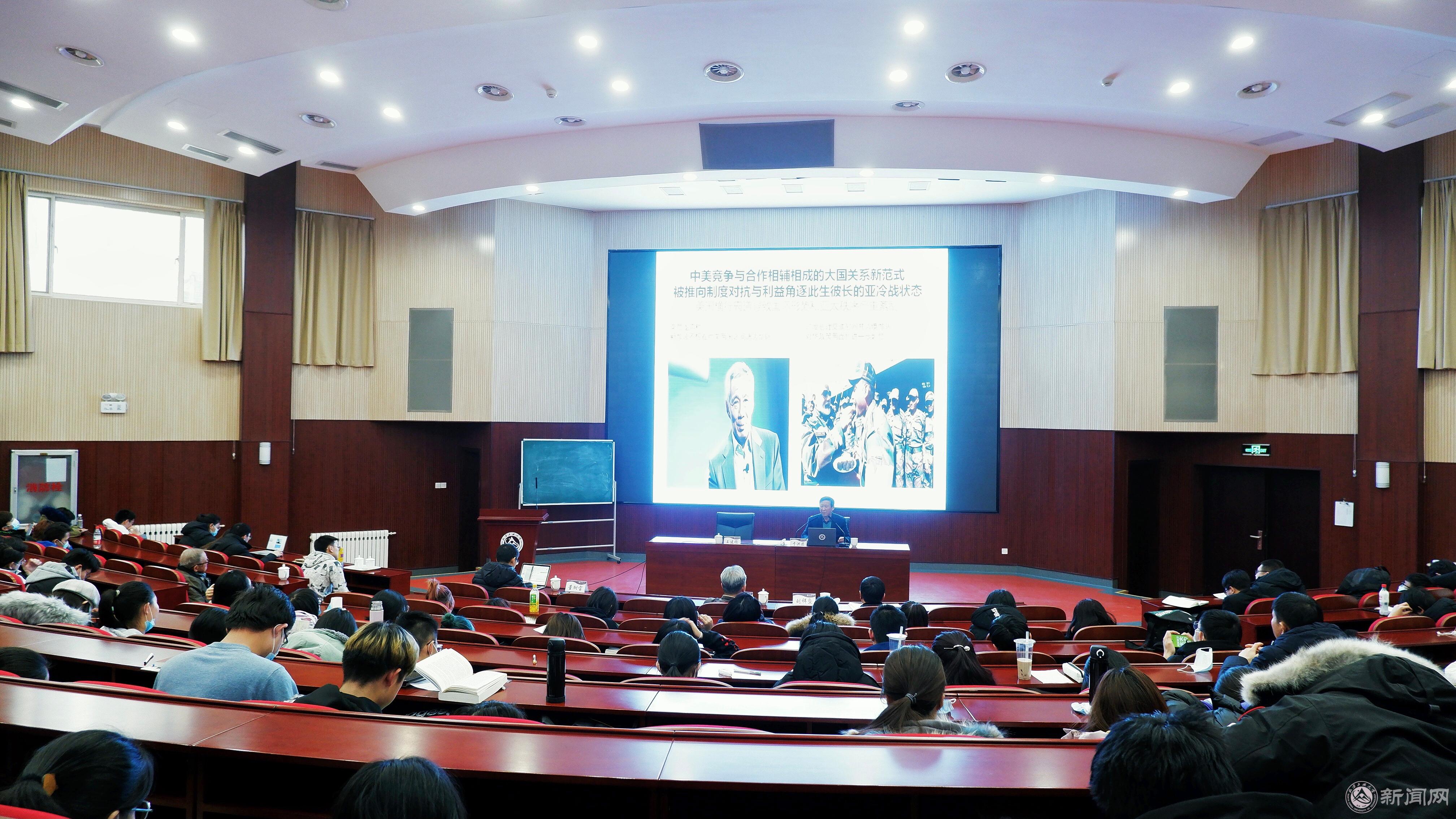 12月8日下午,国家大学生文化素质教育基地人文素质名家讲堂第101期讲座在文化会堂举办。中共中央对外联络部原副部长、中国前驻乌兹别克斯坦共和国大使、国际问题专家于洪君为365官网师生带来主题为《大变局下的中国与世界》的学术讲座,讲座由副校长王建稳主持,全校200余名师生现场聆听了讲座。