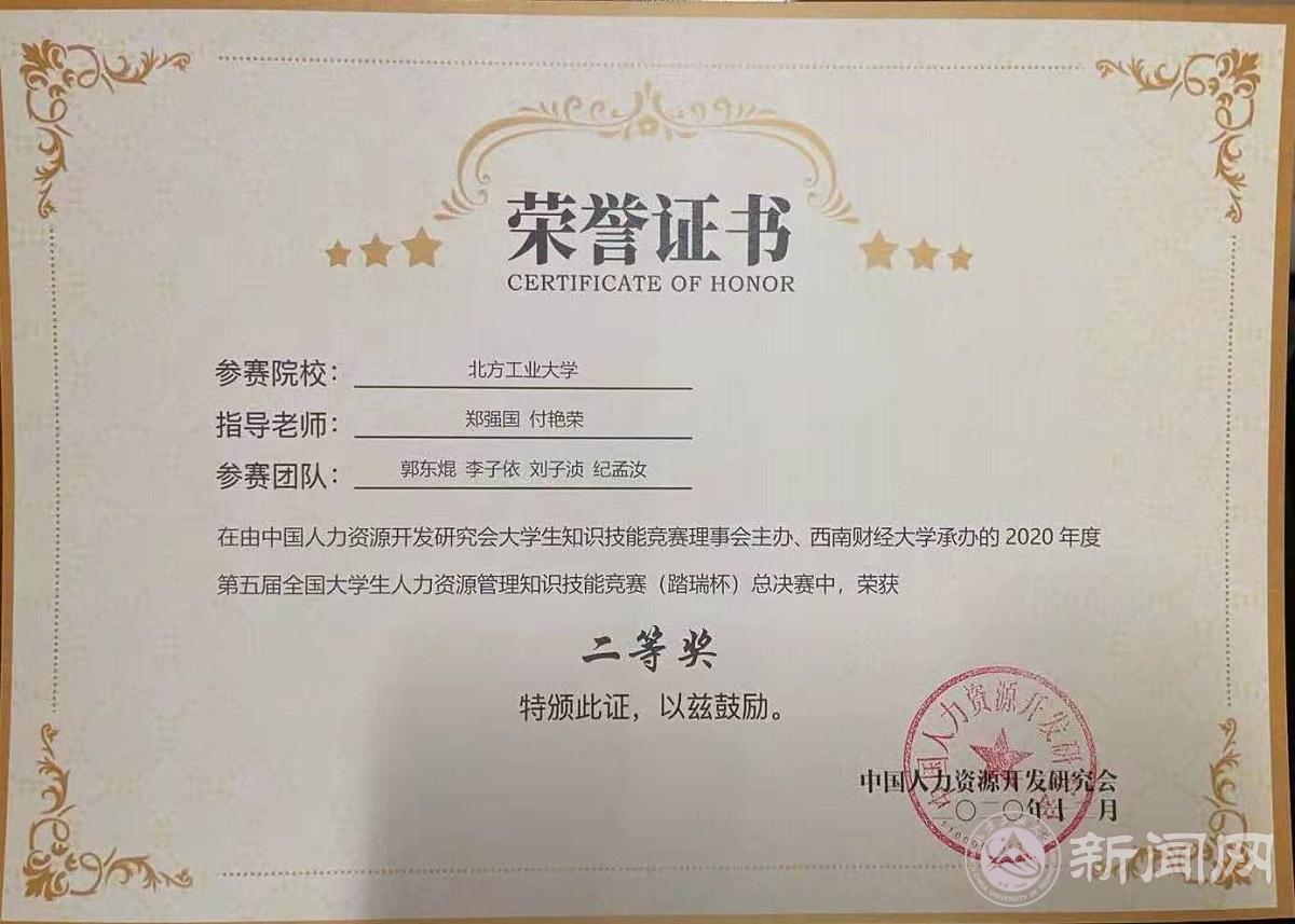 第五届全国大学生人力资源管理知识技能竞赛全程采用网络赛的形式进行。自9月1日启动以来,共有来自全国31个省市的328支参赛队伍报名参加。365官网派出了由郑强国、魏秀丽、罗文豪、付艳荣为指导教师的两支代表队,这两支队伍经过激烈角逐在第一大区赛中均获得了二等奖,其中一支代表队从七大赛区的预选赛中被选拔出来进入全国总决赛。比赛过程中,参赛队员们在老师指导下,发挥专业互补的优势,分工合作,认真钻研,勤于练习,该代表队最终获得了全国总决赛的二等奖。