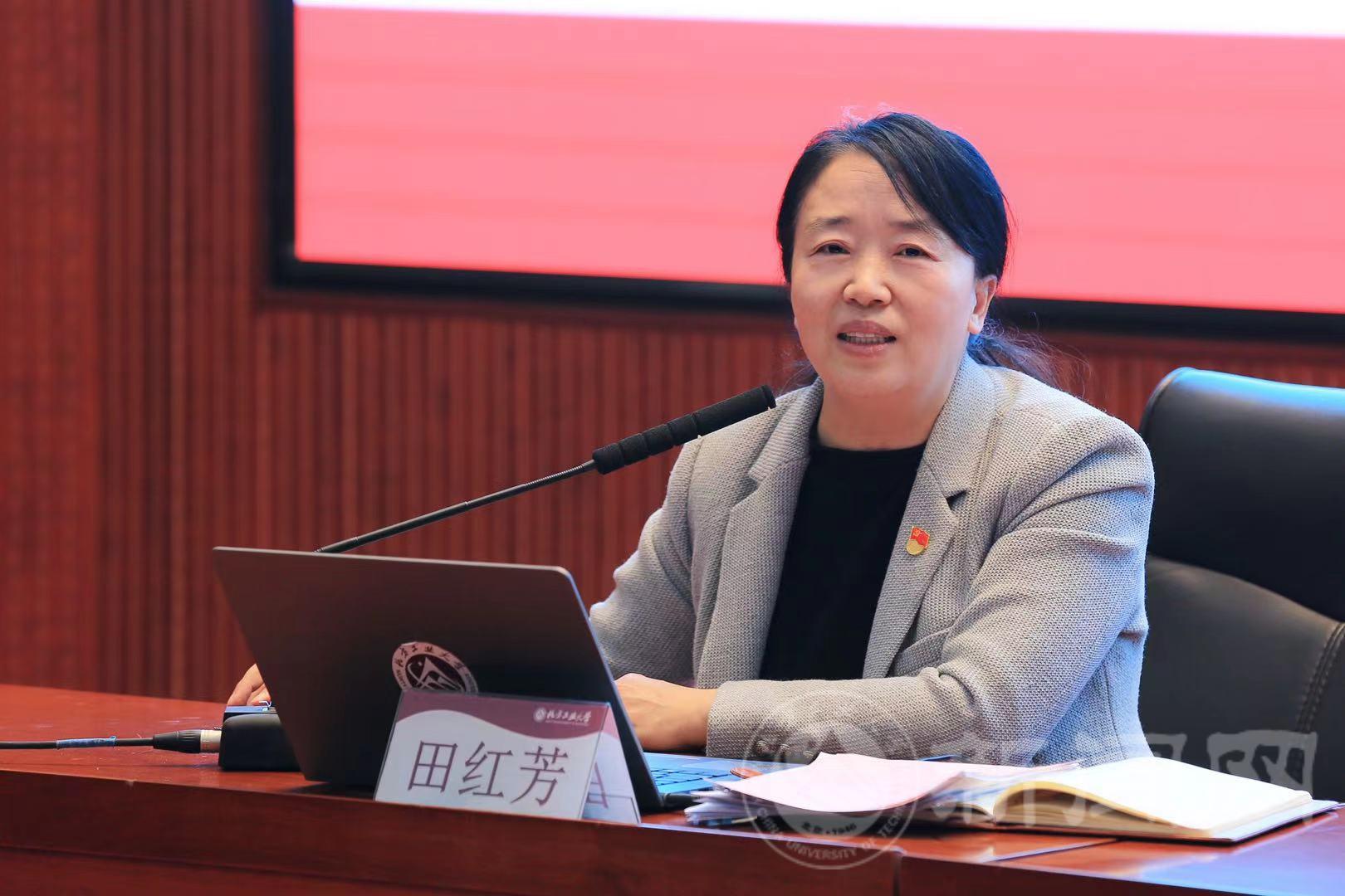田红芳作会议总结并以“学党史、守初心、担使命,全力做好新发展阶段学生思想政治工作”为题做专题报告。她充分肯定了各学院学生工作的有益探索和取得的成绩。她指出,要深刻学习领会习近平总书记在党史学习教育动员大会上的重要讲话精神,自觉做到学史明理、学史增信、学史崇德、学史力行,以昂扬姿态推动学校事业发展,全面提升学校学生思想政治教育水平,以优异成绩迎接建党一百周年。