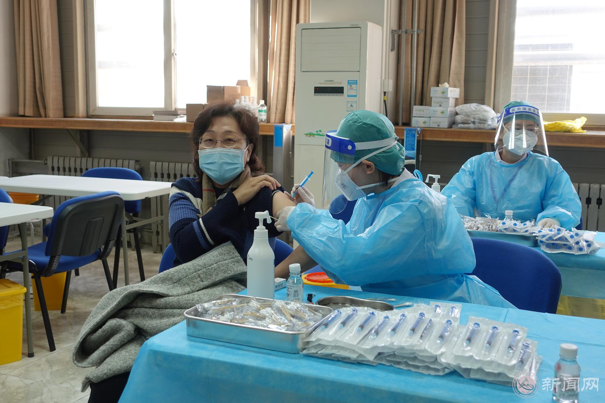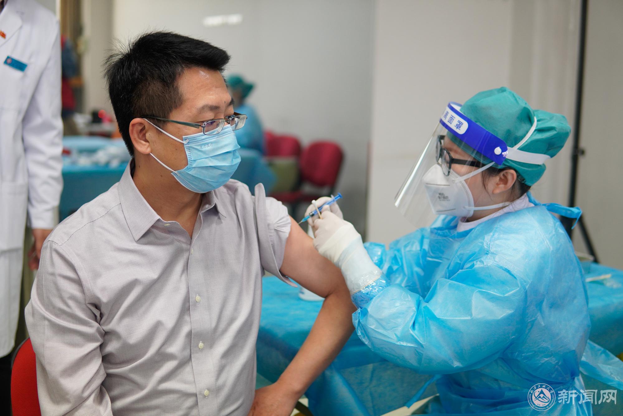 3月23日,学校教职工、后勤保障人员和家属区人员率先进行了接种。校领导缪劲翔、胡应平、王建稳、田红芳、马春成、栗苹来到接种点,关心慰问现场的医务工作者和学生志愿者。符合接种条件的校领导现场接种了新冠疫苗。
