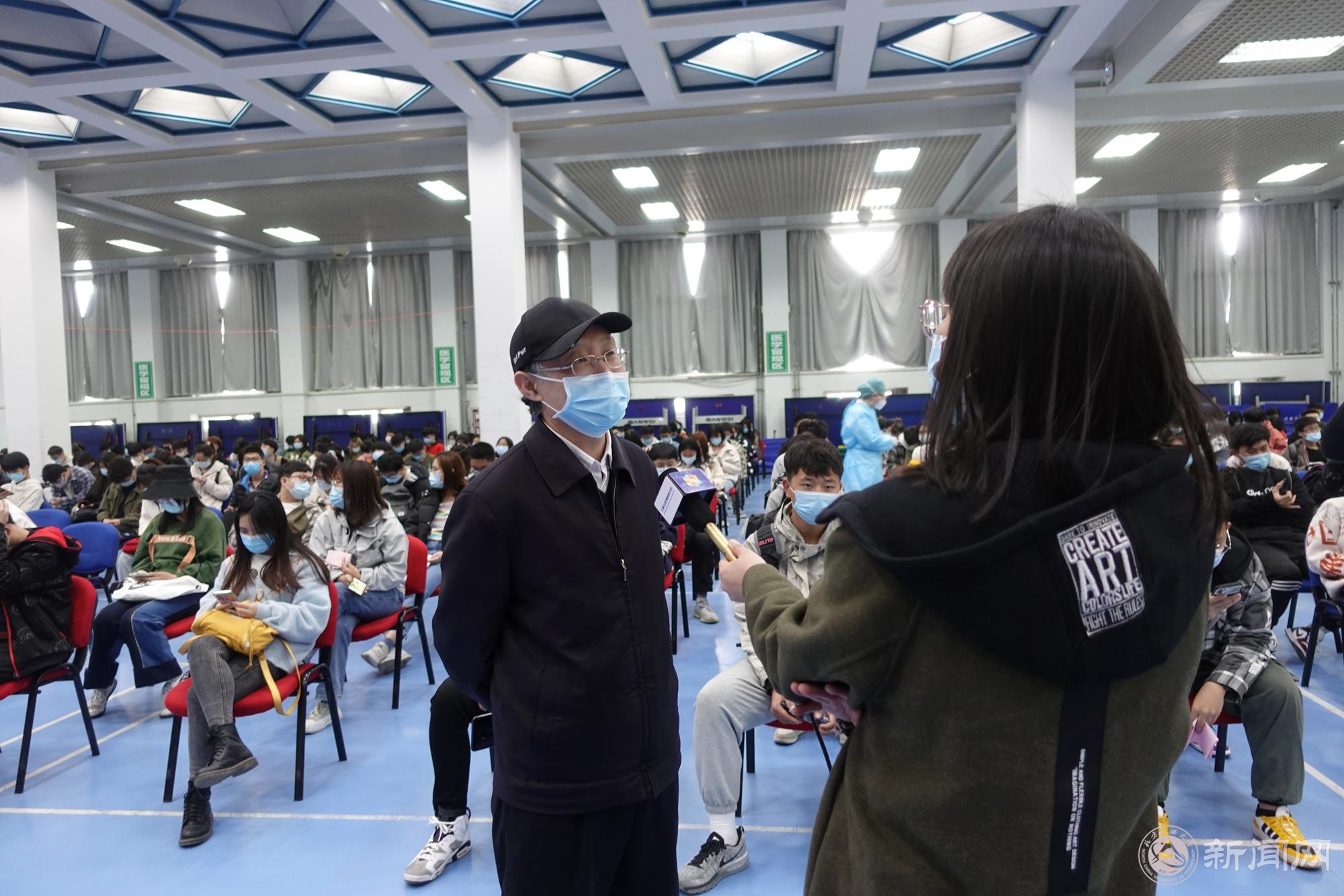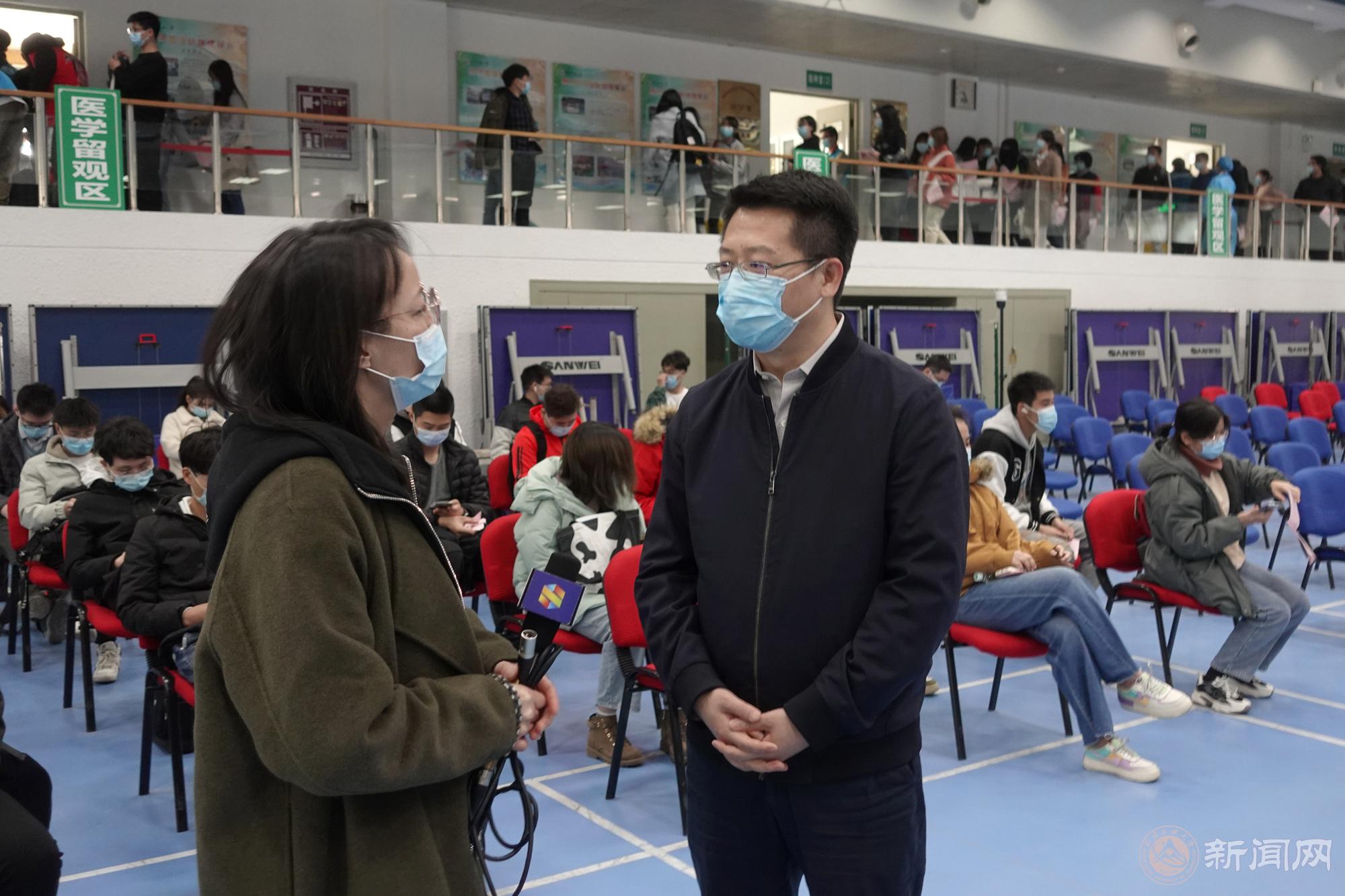 连日来,校领导多次来到接种现场看望接种学生,与医务人员沟通,了解现场情况。缪劲翔书记和胡应平副校长接受了石景山融媒体中心的采访。