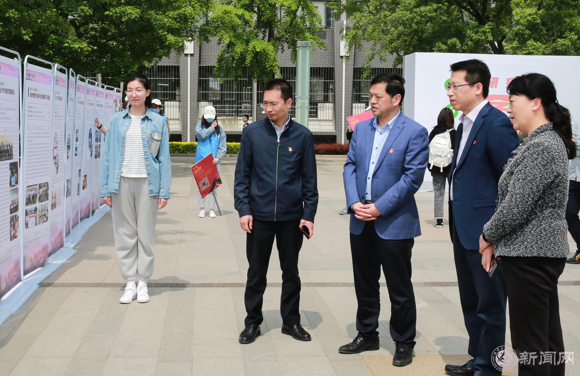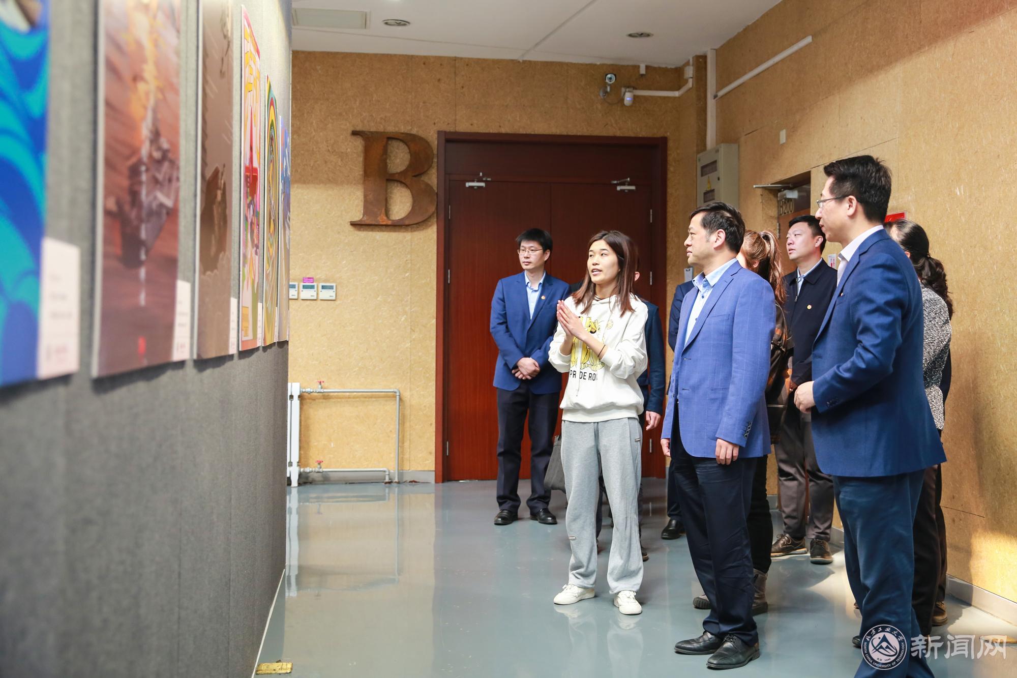 李军会一行首先参观了校史馆,深入了解了学校的发展历程,对学校一直坚守工业报国情怀,七十多年来栉风沐雨、砥砺奋进所取得的成绩表示赞赏。随后,李军会一行参观了由beat365英国官网和首都师范大学联合举办的“红色•记忆•传承——双校庆祝建党百年作品联展”。他边参观边与来自365官网建筑与艺术学院的同学们交流,了解海报设计作品的创作过程,他认为,同学们通过艺术化的形式展示了学党史、悟思想的成果,有机地将思想引领和专业教学相结合,将课程思政和实践育人相结合,提升了思想政治教育的针对性和亲和力,这种做法值得大力宣传和推广。