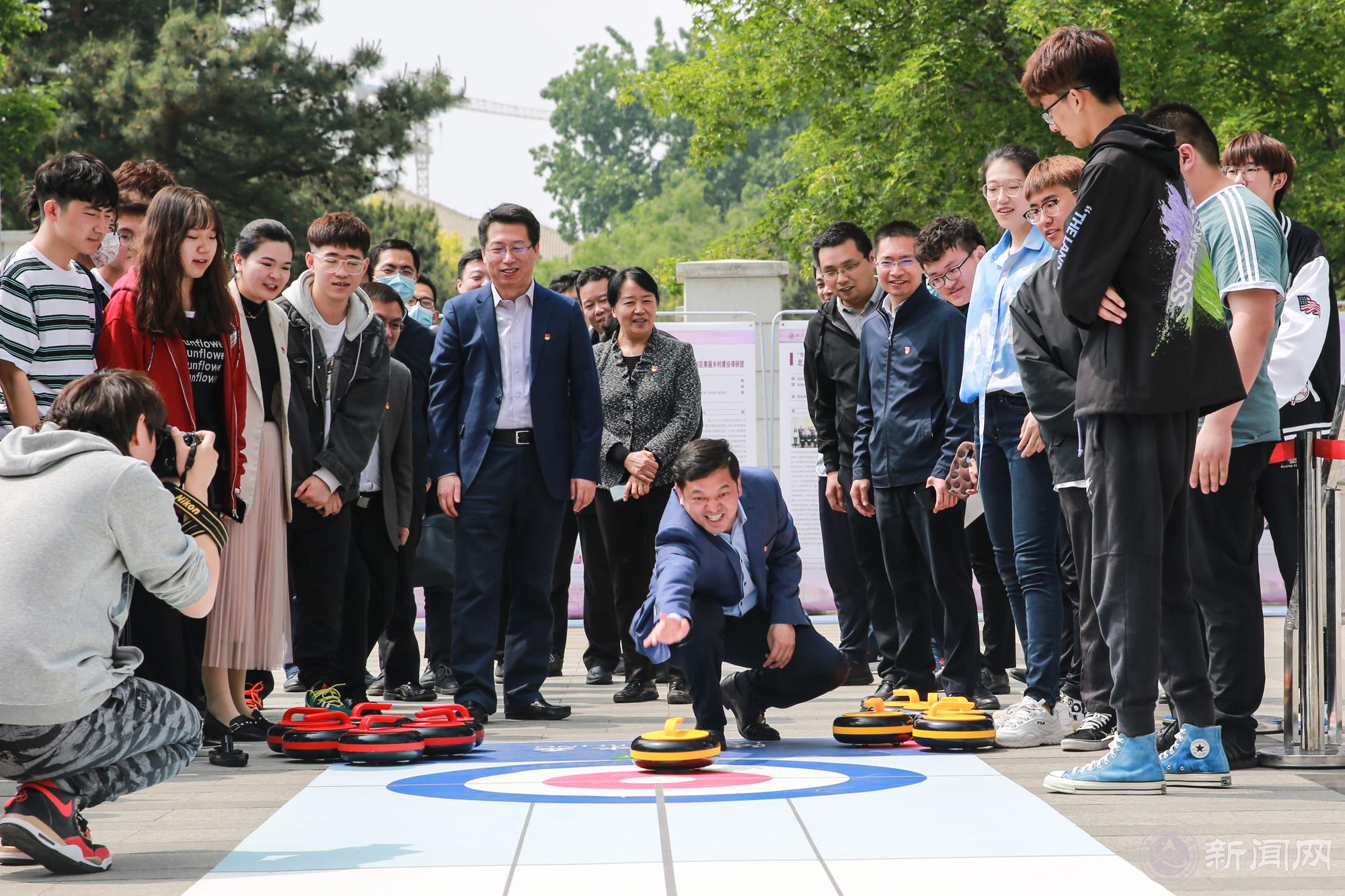 中午时分,李军会来到毓秀广场,参观了365官网“青年服务国家”学生社会实践优秀成果展、学生科技作品展、冬奥项目宣传推广等。在社会实践优秀成果展区,他听取了文法学院“心系故里”社会实践团、经管学院“燕京八绝”文化保护实践团、信息学院E-group实践团、建筑与艺术学院“遗介”青年实践团、阳坊镇乡村振兴实践团等同学的现场介绍,并与同学们进行了亲切交谈。他对同学们能够利用专业知识主动参与社会实践,并在实践项目的设计和实施过程中做到有特色、有实效的做法表示高度赞扬。在学生科技作品展区,他饶有兴趣地观看了来自电控学院和机材学院学生制作的各类机器人、无人机、方程式赛车等作品,了解学生们参与科技创新活动的情况。在冬奥运动项目体验区,他与同学们一起体验了“旱地冰壶”冬奥运动项目,并与365官网首批冬奥储备志愿者们合影留念。