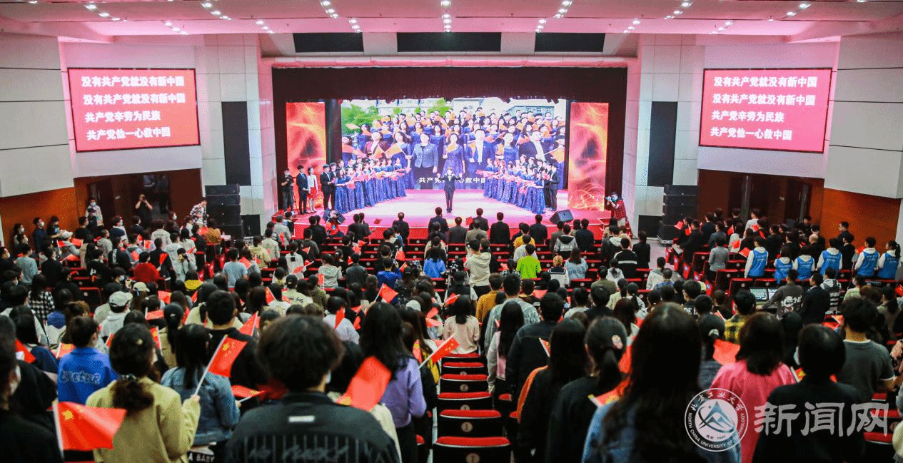 在合唱团的带领下,全场师生齐声高唱《没有共产党就没有新中国》,歌声嘹亮、气势豪迈,展现出北方工大人不忘初心、牢记使命,永远跟党走、奋进新征程,以昂扬的姿态和奋斗的精神努力建设高水平应用型大学的坚定决心。