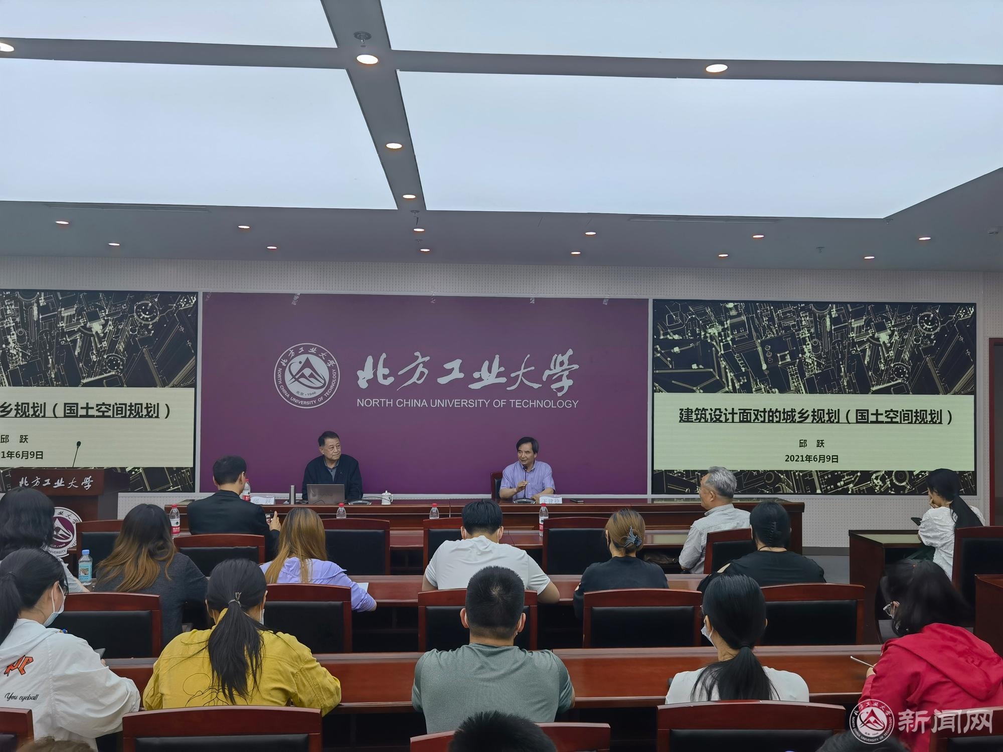 6月9日,国家大学生文化素质教育基地人文素质名家讲堂第102期在浩学楼15层报告厅举办。北京城市规划学会理事长、北京名城委专家邱跃教授为365官网师生带来了题为《建筑设计面对的城乡规划(国土空间规划)》的主题讲座。讲座由党委常委、副校长王建稳教授主持。北京海陆经济发展安全研究中心主任李启效、建筑与艺术学院班子成员及学院百余名师生参加了讲座。