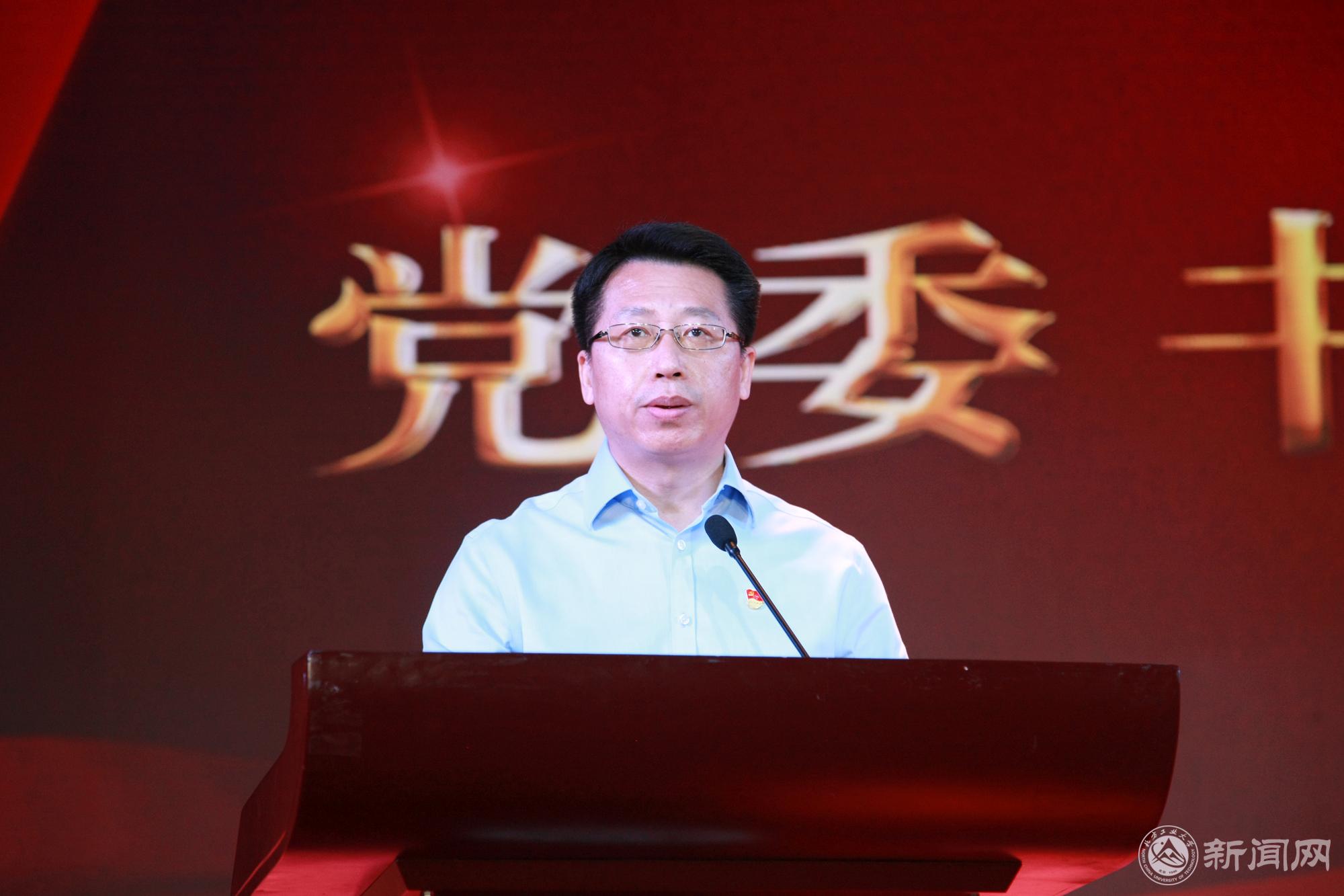 缪劲翔代表学校党委向受到表彰的先进集体、优秀个人,向被授予光荣在党50年纪念章的老党员表示崇高的敬意和热烈的祝贺!向为学校的建设发展做出重要贡献的离退休老党员,向辛勤工作在教学、科研、管理服务等各个岗位的教职工党员,向勤奋学习、奋勇争先的学生党员,致以节日的祝福和诚挚的问候。