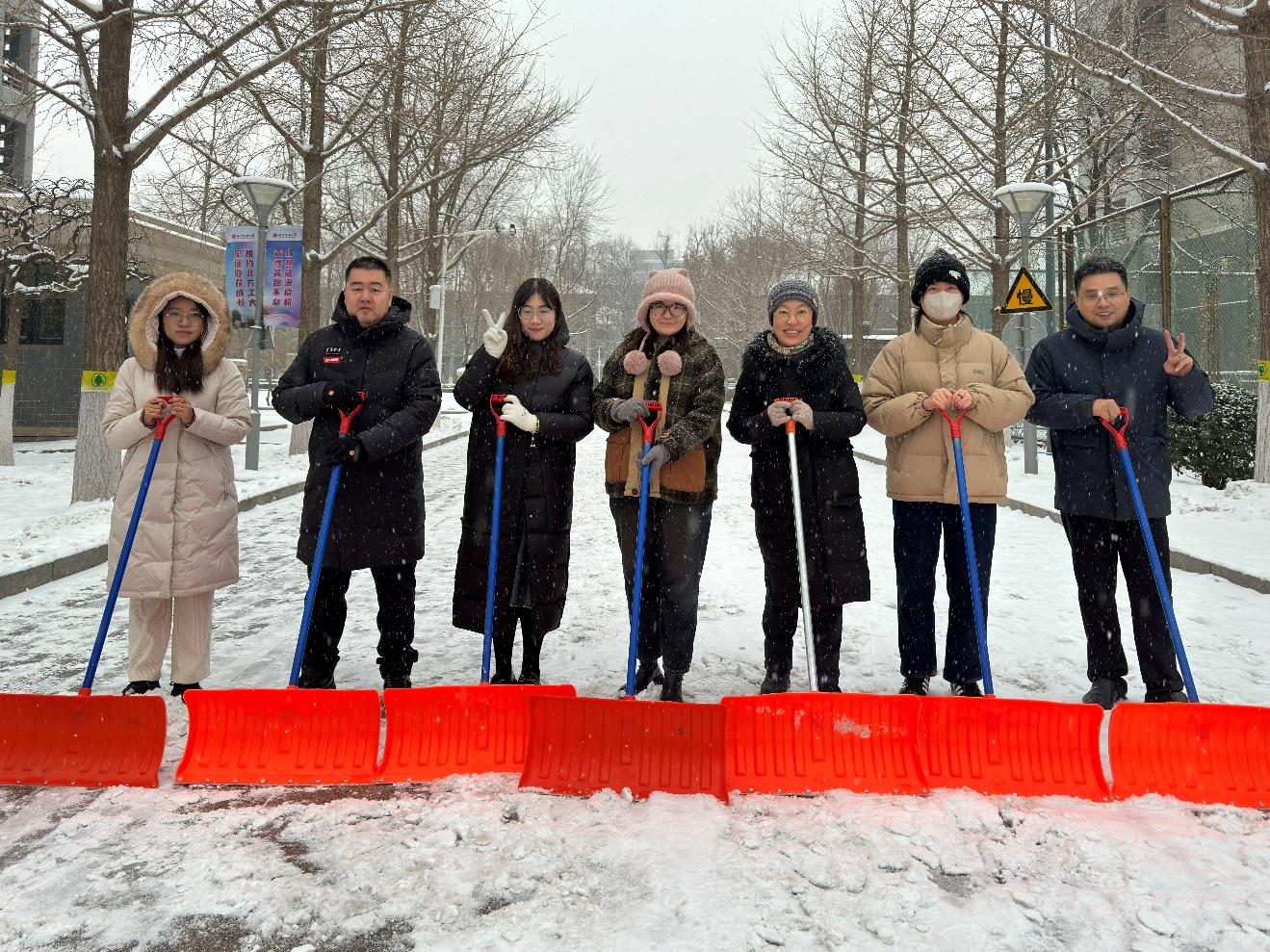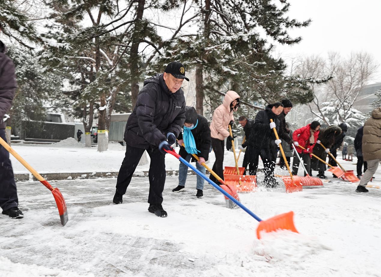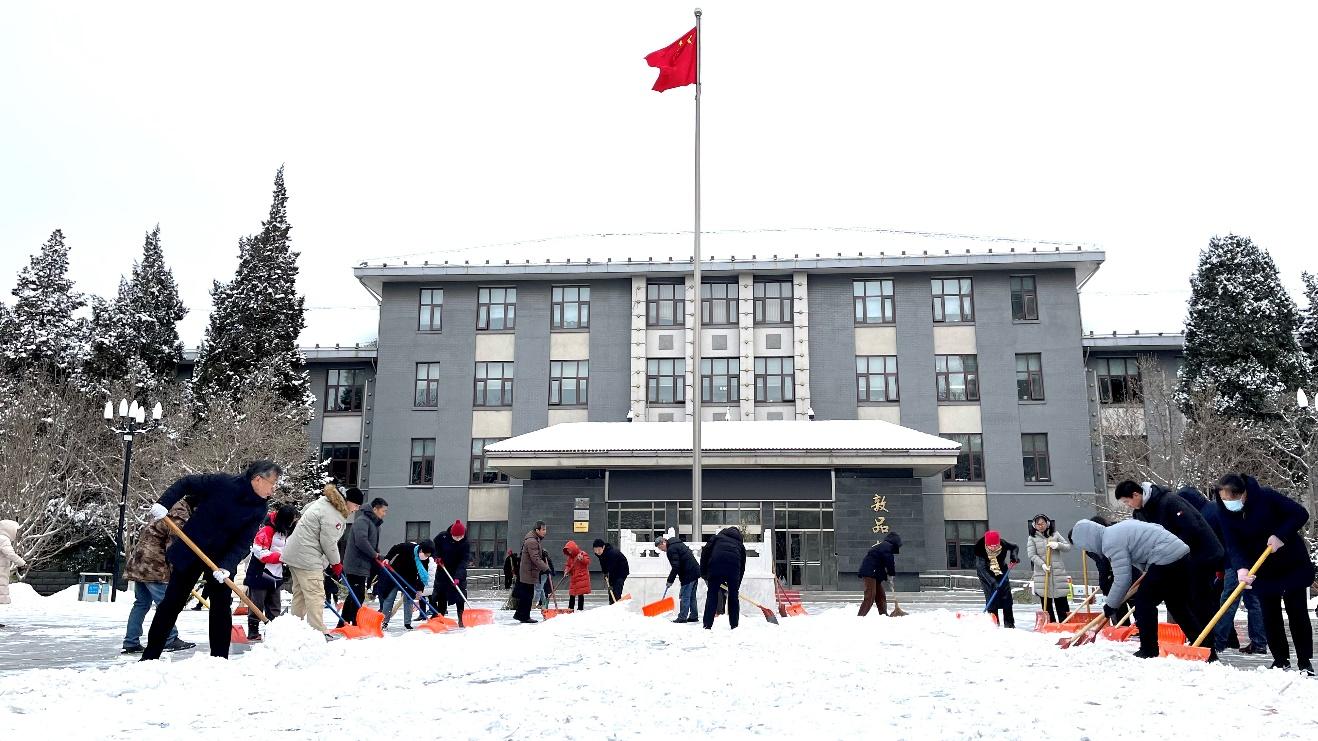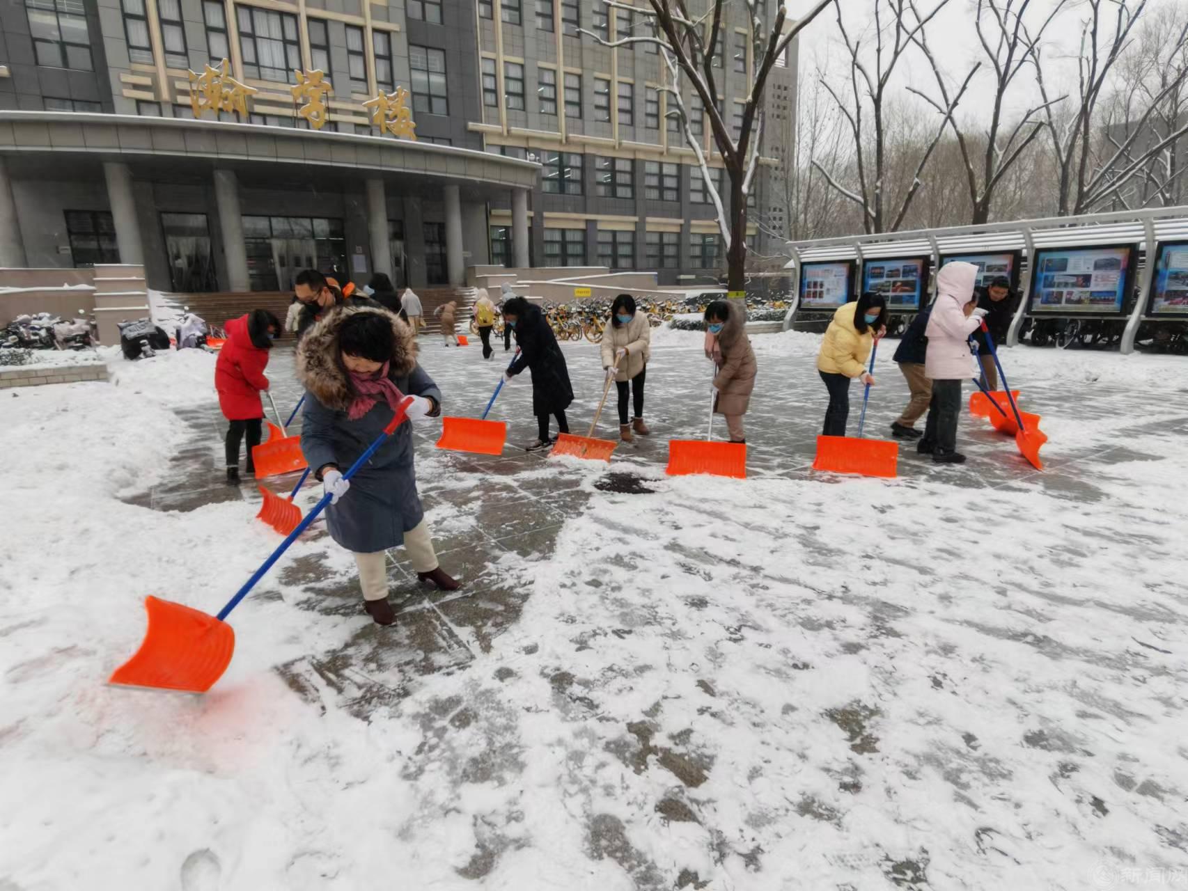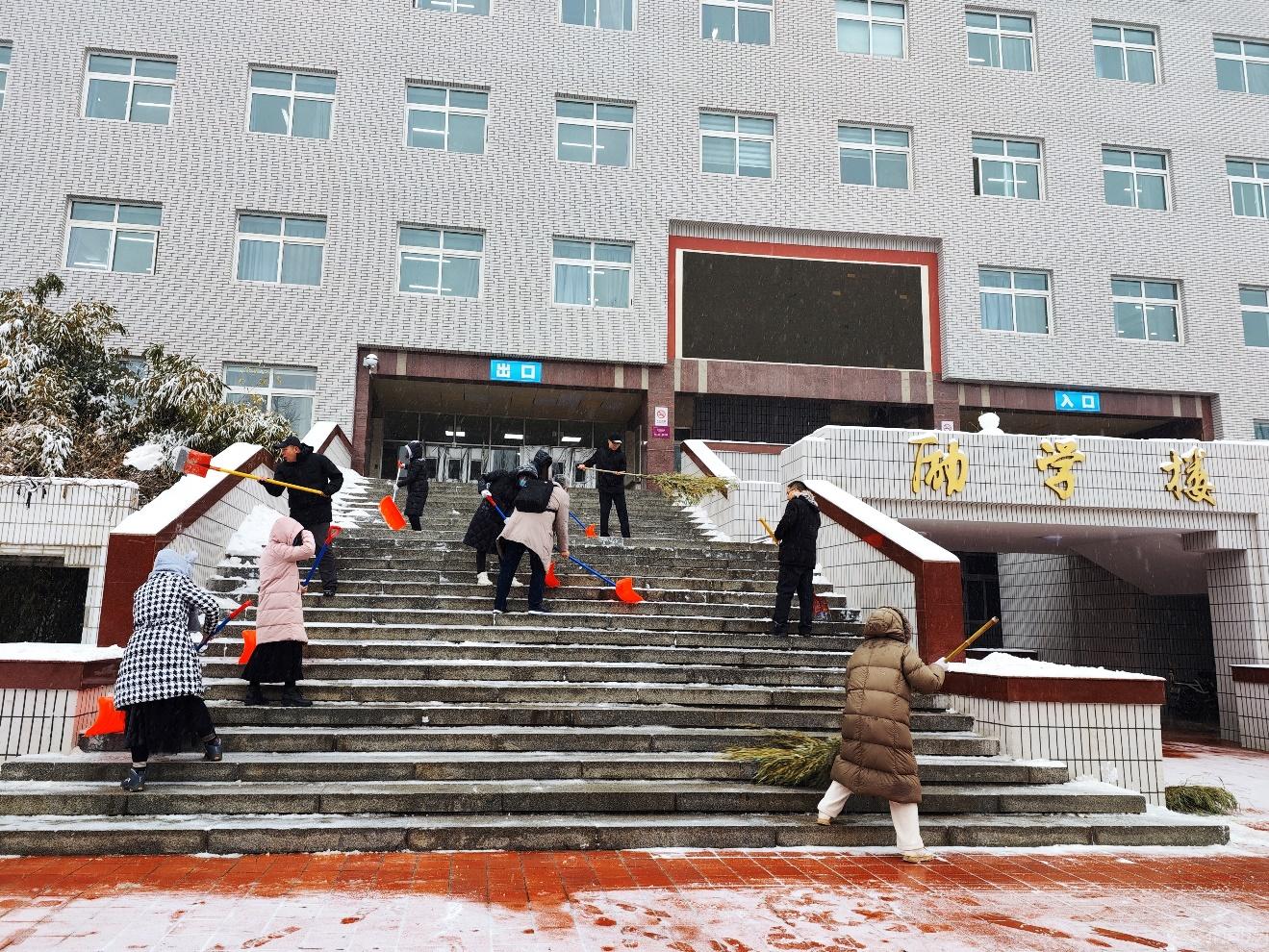 全校师生积极动员起来,加入铲冰扫雪的行列,同心守护美丽校园。