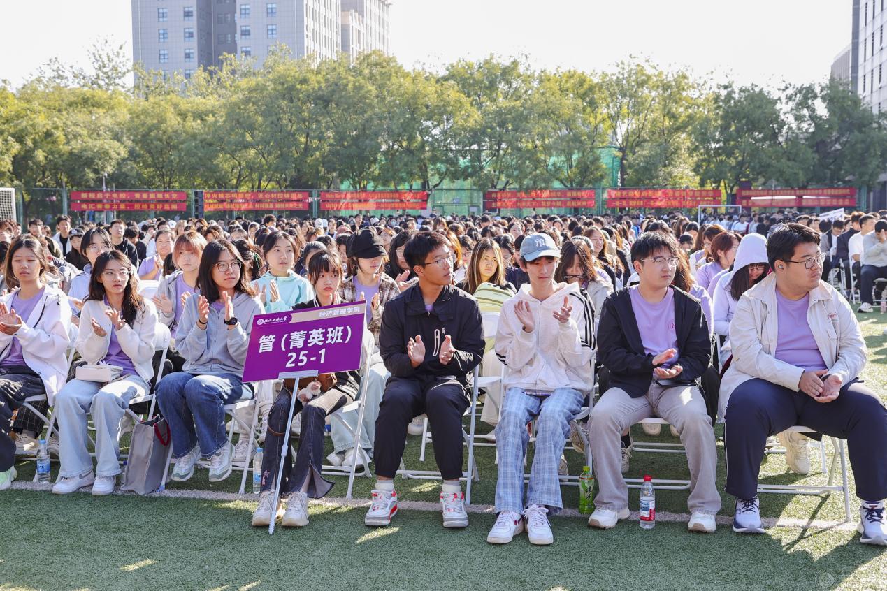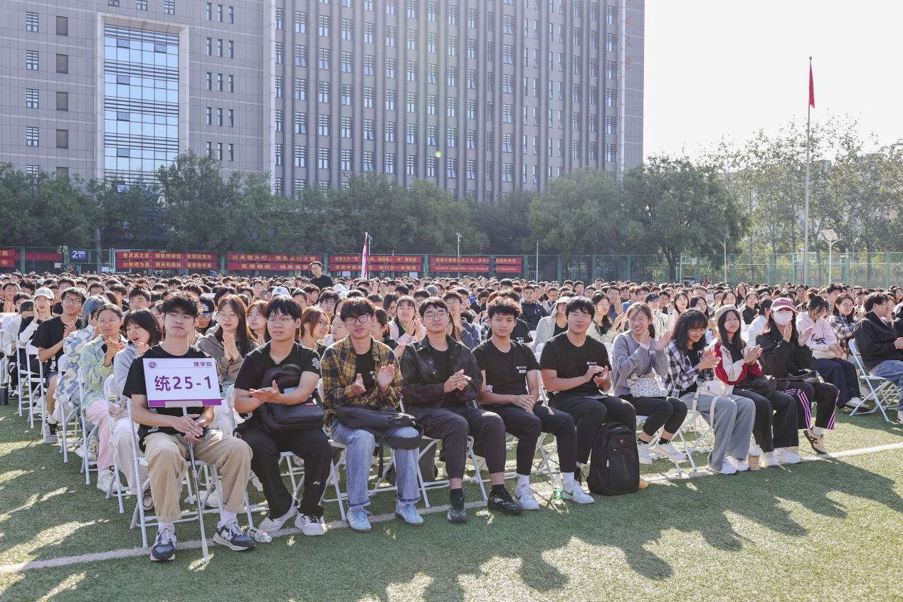 张立峰与同学们分享了四句话:一是保留好大学的录取通知书。它承载着同学们十二年寒窗的汗水,记录着大家与北方工大的第一次 “约定”,将成为未来回忆青春的“钥匙”,提醒同学们牢记“北方工大人”身份,把对学校的热爱代代传承。二是修身立德,在北方工大结识人生挚友。大学的朋友是靠谱的,大学同学更会成为一生的朋友。要相互包容,呵护同学缘分;目中有人,在集体生活中找到和谐相处的节奏;心中有爱,在相互扶持中收获真挚的友谊。三是全力以赴,在北方工大书写青春篇章。始终严格要求自己,养成良好学习和生活习惯,完成“从被动接受知识到主动探究真理”“从跟随他人脚步到独立思考”“从习惯被安排到主动担当”的成长转变,立泰山壮志、破万卷好书、逐千般竞赛、塑阳光思维、锻钢铁身躯,活成自己喜欢的样子。四是牢记为中华民族伟大复兴奋斗的目标。主动融入中华民族伟大复兴的壮阔征程,做一个有根有魂、堂堂正正的中国人,将时代重任内化于心、外化于行,刻苦求知,明理修身,全面发展,努力成长为实现中华民族伟大复兴的钢铁脊梁。他寄语同学们,要以今日为起点,以奋斗为笔,成长为“底色亮、能力强、有情怀”的工大人,让青春在服务国家、奉献社会的征程中绽放绚丽之花。