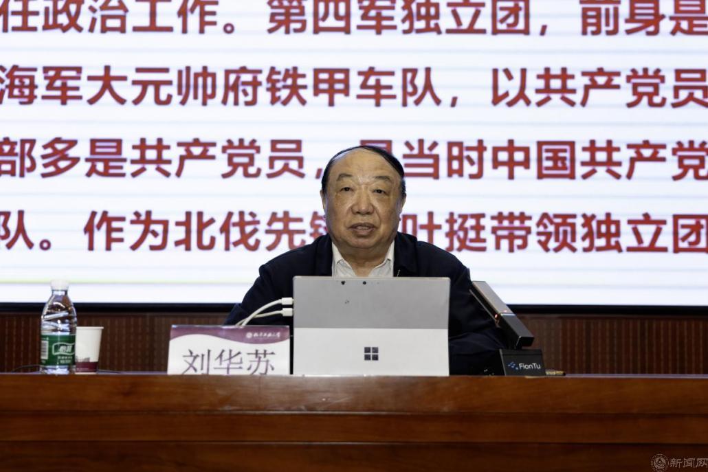 刘华苏少将长期致力于党史、军史研究,尤其深耕新四军历史领域,曾任北京新四军研究会副会长,参与编纂多部新四军专题著作。在讲座中,他以习近平总书记关于“江山就是人民,人民就是江山”的重要论述开篇,系统梳理了新四军从1937年成立到1947年整编为中国人民解放军的十年奋斗历程,强调这支由南方八省红军游击队组建的人民武装,为民族独立、人民解放和世界反法西斯战争的胜利作出了巨大贡献,被人民誉为铁军。