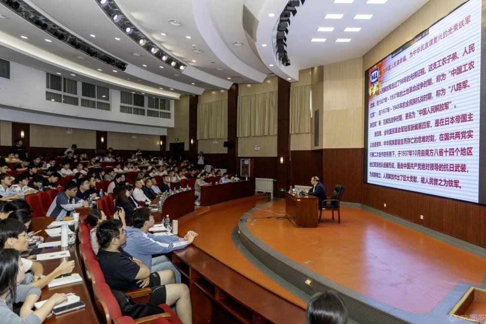 刘华苏少将从《新四军军歌》切入,追溯其历史渊源。从北伐战争中被誉为“铁军”的叶挺独立团,到井冈山会师后的红军第四军,再到南方游击战争中“风雪饥寒、穷山野营”的艰苦坚守,生动展现了新四军“铁心向党、为民报国”的精神基因。讲座通过大量鲜活史料,讲述了新四军将士的英雄群像:13岁参军的“娃娃兵”王桂林与日寇拼刺刀英勇牺牲,烈士施奇凄美而悲壮的爱情故事,泰国侨商子弟陈子谷捐出26万法币遗产支援抗战,日本反战同盟成员松野觉火线喊话牺牲……这些跨越年龄、地域、国籍的英雄故事,让在场师生深刻感受到“人民军队为人民”的初心本色。