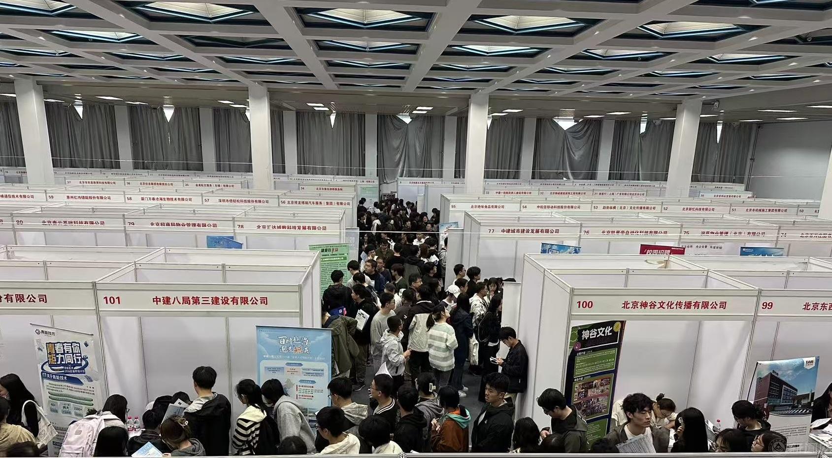 为进一步搭建毕业生与用人单位的高效对接平台,促进毕业生高质量充分就业,10月14日下午,学校在体育馆一层举办“2026届毕业生秋季大型综合双选会(第一场)”。本次双选会吸引了包括中国电建集团、航天规划设计集团、北京城建北方集团、中冶京诚等41家国有企业和事业单位,南京银行股份有限公司、亿纬锂能、中环建等80家优质民营及三资企业在内的121家用人单位参会。
