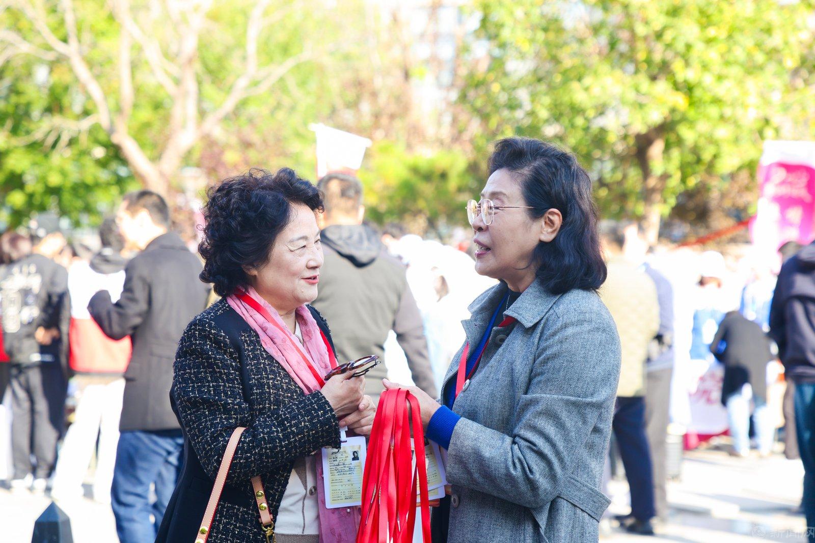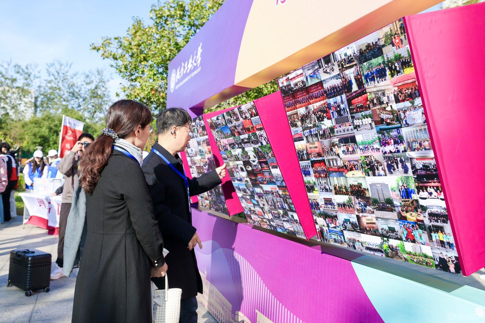 校园内到处是欢声笑语。校友们或驻足翻阅老照片展板,或与许久未见的同窗热情拥抱,回忆在校时的点点滴滴,言语间满是对青春岁月的怀念与对母校发展的关切。