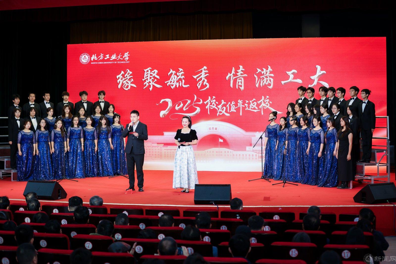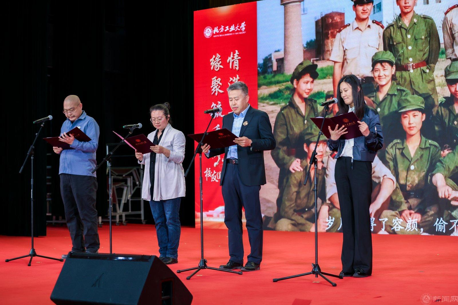 自01级校友惠登峰、土木01级校友刘伟峰、艺设01级校友胡梦盈、管01级校友刘芮诗朗诵《致北方工大,我永远的港湾》(自动化81级校友 安景新创作)表达对母校的依依眷恋之情。