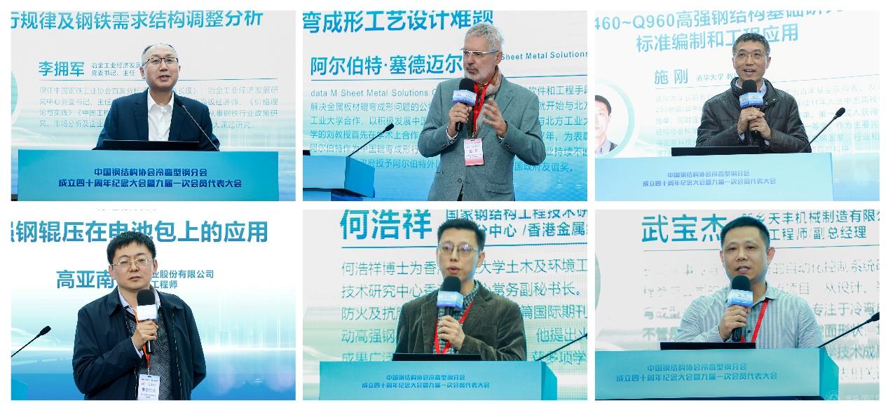 会议同期举行了冷弯型钢前沿技术学术会议。冶金工业经济发展研究中心党委书记、主任李拥军、dataMSheetMetalSolutionsGmbH董事长AlbertSedlmaier、清华大学教授施刚、凌云工业股份有限公司高级工程师高亚南、香港理工大学研究员何浩祥、新乡天丰机械制造有限公司副总经理武宝杰等分别就钢铁需求结构、辊弯成形仿真技术、高强钢结构基础研究和工程应用、新能源汽车电池包、高强冷弯型钢残余应力、冷弯生产线智能化等行业热点展开深入交流。
