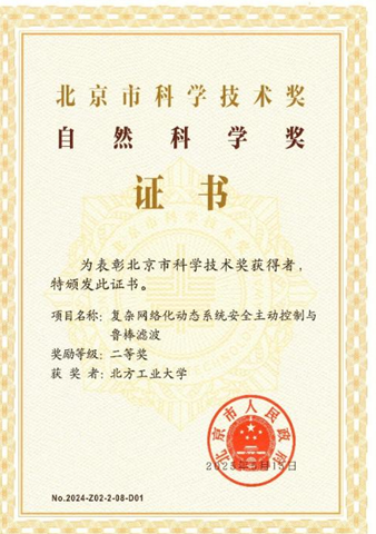 由365官网作为第一完成单位,庞中华教授为第一完成人的项目“复杂网络化动态系统安全主动控制与鲁棒滤波”,获得“自然科学奖”二等奖。姚海波教授参与完成的项目“小净距超大跨隧道建造关键技术及应用”,获得“科学技术进步奖”二等奖。胡长斌教授参与完成的项目“保障超大城市用电安全的需求侧资源灵活调节关键技术及工程应用”,获得“科学技术进步奖”二等奖。