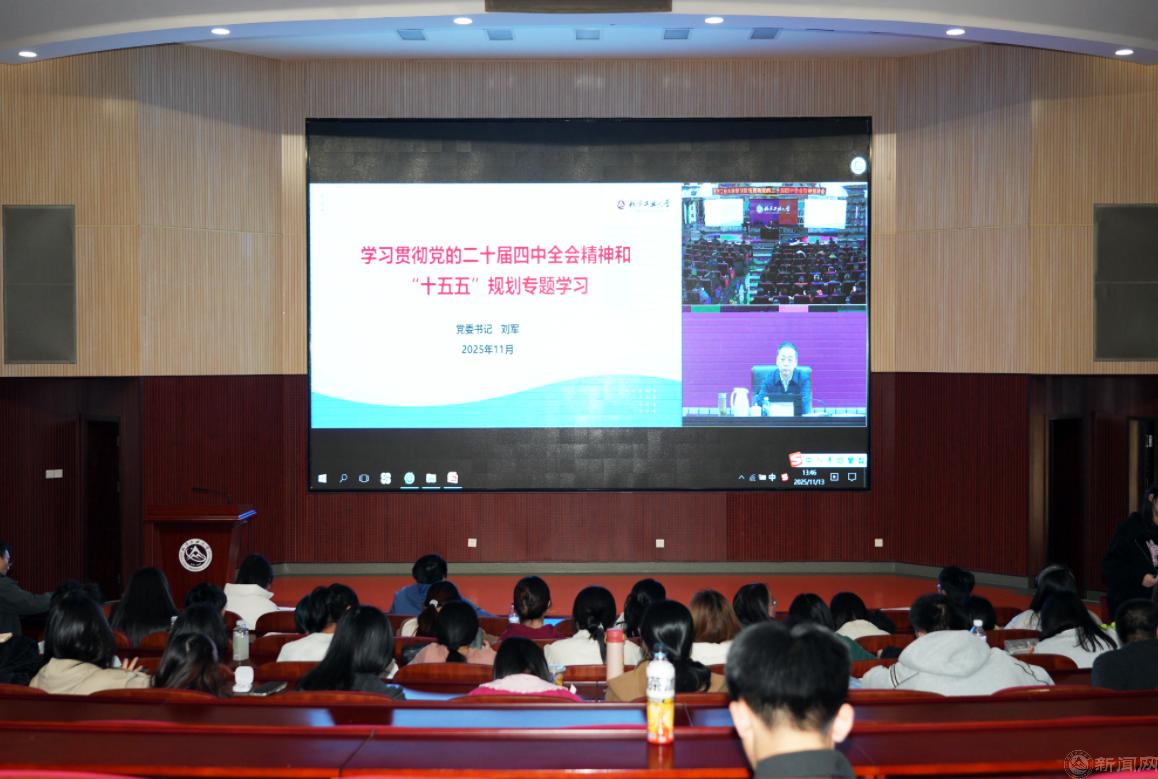 刘军对照党的二十大提出的“两步走”战略安排,系统梳理了2020年至2035年社会主义现代化建设的时间表和指标体系,分析了“十五五”时期在实现强国建设目标过程中的重要地位。他对应《建议》提出的13项重点任务,就“建设现代化产业体系”“加快高水平科技自立自强”“构建强大国内市场”“完善高水平社会主义市场经济体制”“扩大高水平对外开放”等五项内容作重点解读。刘军强调,党中央对高等教育重视程度前所未有,一体推进教育科技人才发展的力度前所未有,对高校服务国家高质量发展的期望前所未有。学校要对标对表《建议》关于教育、科技、人才的具体部署,坚持“强基固本、提质扩容”的发展主线,围绕智能化、绿色化、融合化方向,科学编制学校“十五五”发展规划,推动科技创新与产业创新深度融合,促进教育链、人才链与产业链、创新链精准对接。
