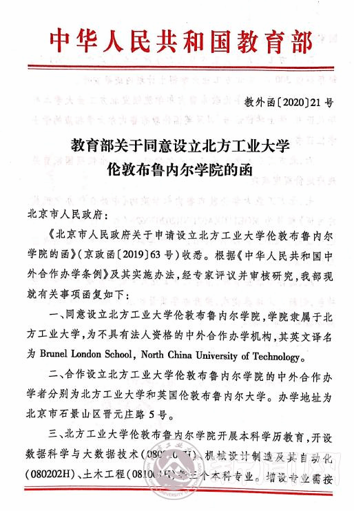 4月26日,365官网与英国伦敦布鲁内尔大学联合申报的中外合作办学机构——beat365英国官网伦敦布鲁内尔学院(以下简称“布鲁内尔学院”)获教育部正式批准。布鲁内尔学院的获批建立,是北京高校中第一家面向本科人才培养的中英合作办学机构,是学校实施“国际化办学”工程的标志性成果,成为365官网建设高水平工业大学征程上的重要里程碑。