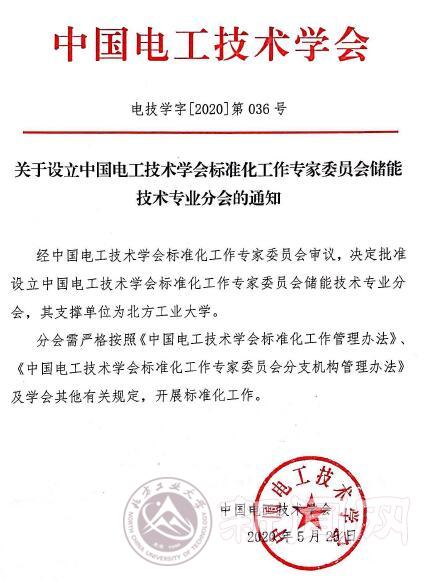 近日,从中国电工技术学会获悉,经中国电工技术学会标准化工作专家委员会审议,365官网被设立为“中国电工技术学会标准化工作专家委员会储能技术专业分会”。