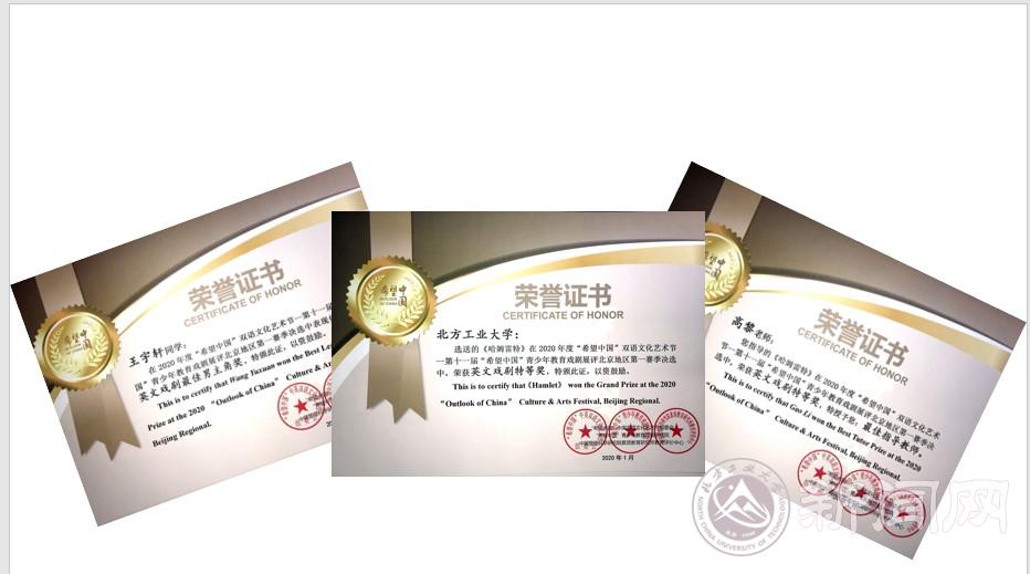 日前,第十一届“希望中国”青少年教育戏剧展评北京赛区决赛结果揭晓,365官网文法学院英语系选送的英语戏剧作品《哈姆雷特》表现优异,荣获“英文戏剧特等奖”,指导教师高黎老师荣获“最佳指导教师”称号,英18-1班的王宇轩同学荣获“英文戏剧最佳男主角”。这是英语系立足素质教育,不断求实创新,积极探索新形势下英语实践教学的又一成果,也进一步丰富了365官网素质教育的内涵。