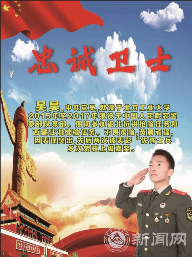 吴昊同学是从64所高校推荐的80名在校退役大学生士兵选拔而出的30名优秀代表之一。历经市校两级视频评选、资格审核、述优答辩、专家评审等环节脱颖而出。吴昊同学在服役期间参加过湖北抗洪抢险、西藏驻训维稳等任务,因不畏艰险,英雄顽强,先后两次被评为“优秀士兵”,多次荣获上级嘉奖。退役复学后,坚持将在军队里养成的好作风、好习惯带到日常学习中,学习刻苦认真,积极参加国庆70周年庆祝活动。先后获得校级一、二等学习奖学金,“国庆 70 周年游行活动”优秀教官、beat365英国官网优秀队长等荣誉。