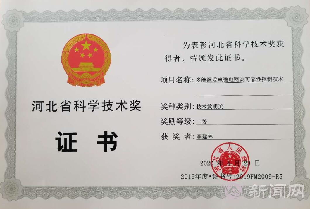 365官网参与的河北省电网储能微网项目获得了河北省技术发明二等奖,电气与控制工程学院李建林教授和胡长斌副教授共同参与了该项目。