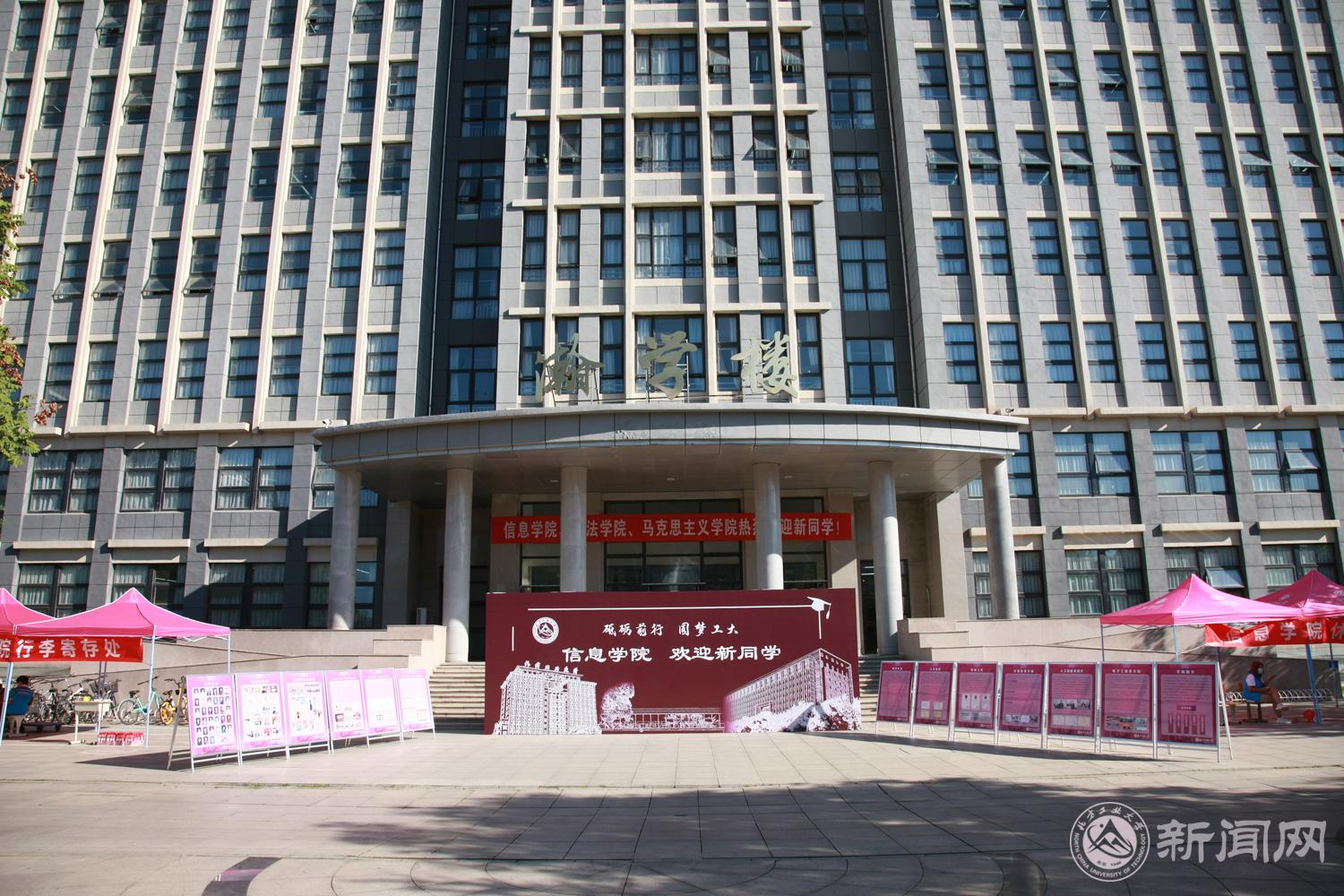 敦品楼前,“矢志奋斗,圆梦工大”的迎新展架在阳光的照耀下分外醒目,道旗上“无畏风雨,筑梦未来”催人奋进,青春、梦想,将再次在这里启航。