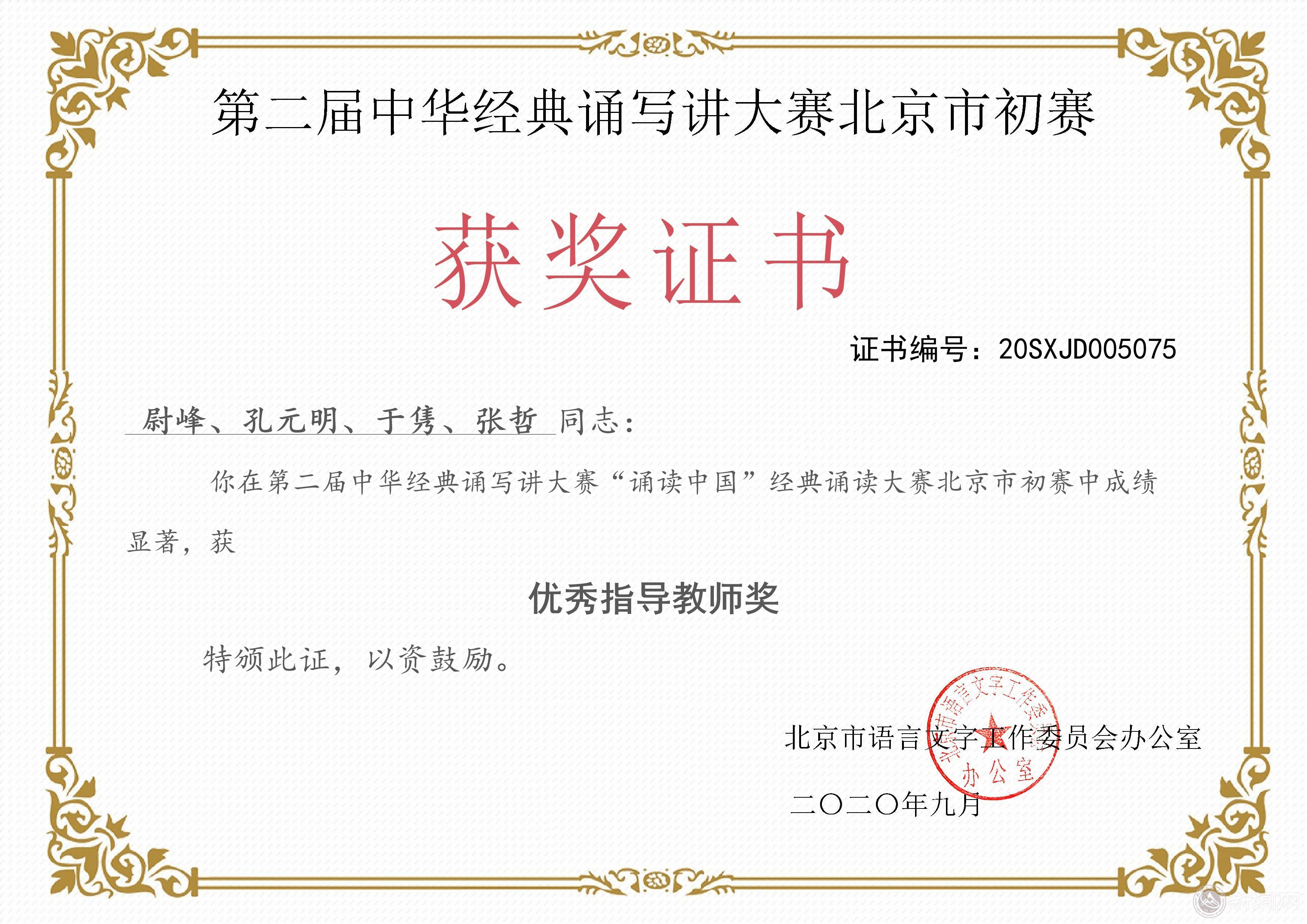 第二届中华经典诵写讲大赛北京市初赛于5月初举办,面对疫情的重重挑战,365官网师生克服困难,踊跃参与、精心准备、通力合作。老师们线上指导参赛学生挑选诵读作品,通过微信语音试读帮助学生纠正发音、语速等问题,提出改进意见,大家利用休息时间集中排练、反复打磨、多次拍摄,完成最终作品。