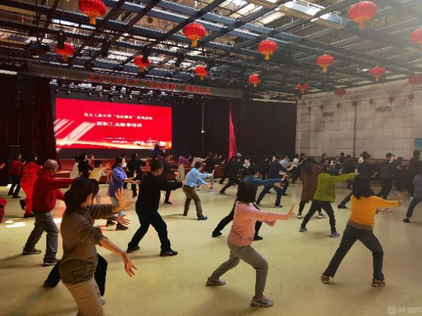 为贯彻落实习近平总书记关于体育的重要论述精神,推动全民健身活动深入开展,进一步丰富教职工业余文化体育生活,近日,由校工会举办的“全民健身”系列活动——太极拳培训在学生服务楼4层多功能厅正式启动。校工会常务副主席黄睿、副主席王侃,部分分工会主席以及各分工会骨干教师、学员近80人参加了本次活动。