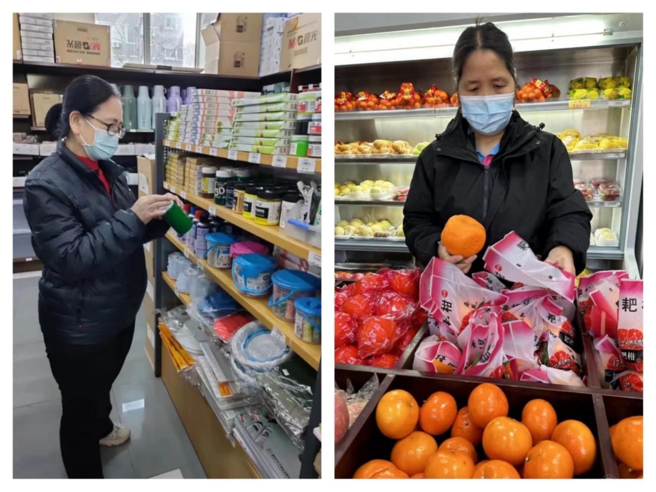 各合作柜台在排查消防、电源、易燃物等方面情况的同时,着重检查店内主营商品质量。水果店逐一检查在售水果品质情况;校园水站检查了桶装水保质期及码放安全问题;文具店重点检查文具质量达标及在售刀具合规情况;洗衣店自查商品公示牌价格等等。