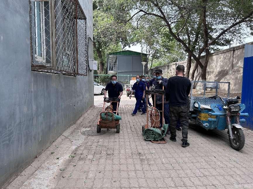 演练活动现场模拟了受暴雨影响,家属10号楼东侧出现积水入楼情况,工作人员立即启动应急预案。演练设置了发现险情、启动防汛应急预案、发出应急处置指令和应急处置等环节。部门成立防汛领导小组、整个抢险在领导小组统一指挥下科学分工、明确各职能小组的职责和任务。预警组负责险情预判并立即报告、现场秩序维护。物资保障组负责物资运输及对家属10楼各单元门进行封堵。抢险突击组负责架设临时水泵、接电进行紧急排水。
