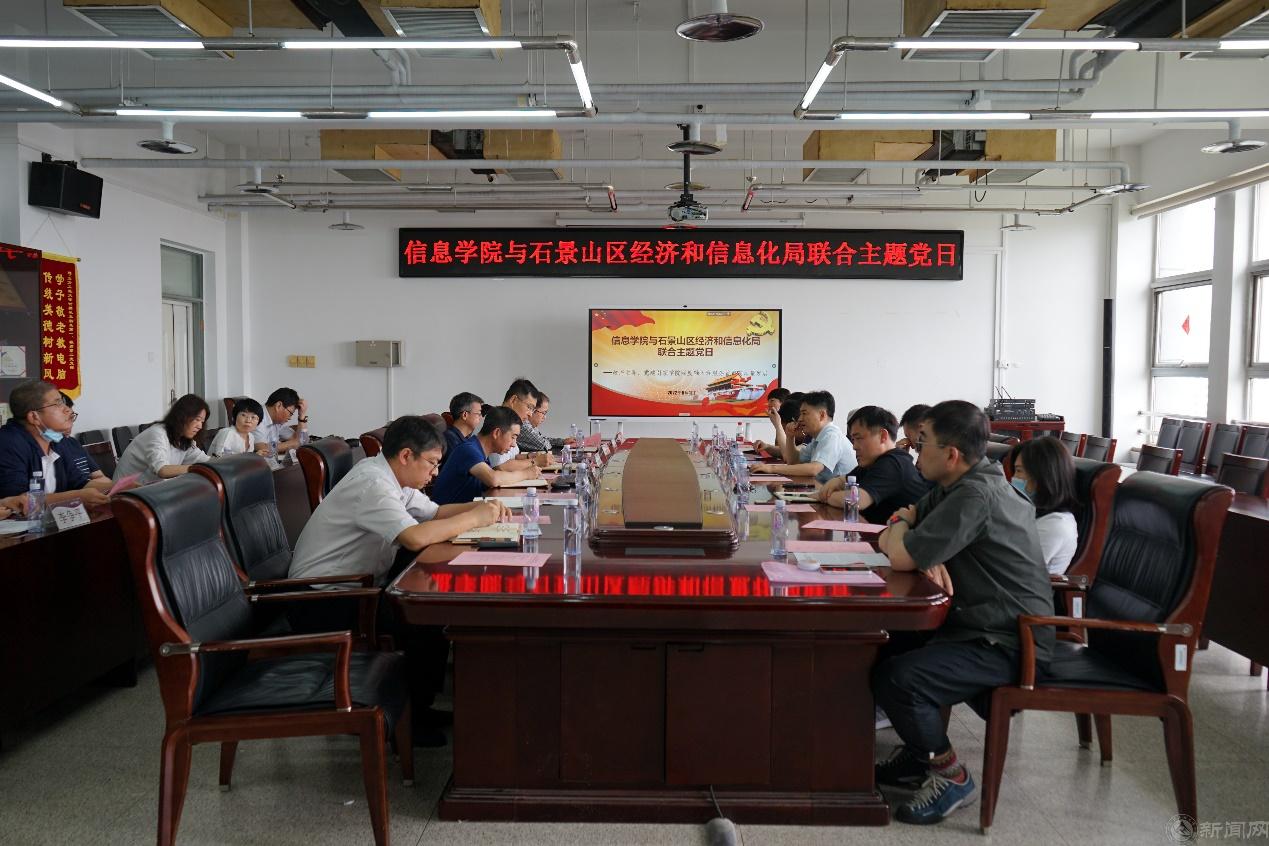 6月1日,石景山区经济和信息化局与365官网信息学院开展联合主题党日活动。经信局党组副书记、局长张晓磊,副局长杨光、肖珂,信息学院党委书记王月海,院长马礼,党委副书记陈卫,副院长段建勇、鲁远耀,信息学院党委理论中心组成员、教师代表等双方20多名党员干部参加活动。同时,本次活动也是信息学院党委理论中心组(扩大)的一次集体学习,校党委宣传部副部长、校党委理论学习中心组巡听工作组成员陈国秀应邀到会指导。王月海主持此次主题党日活动。