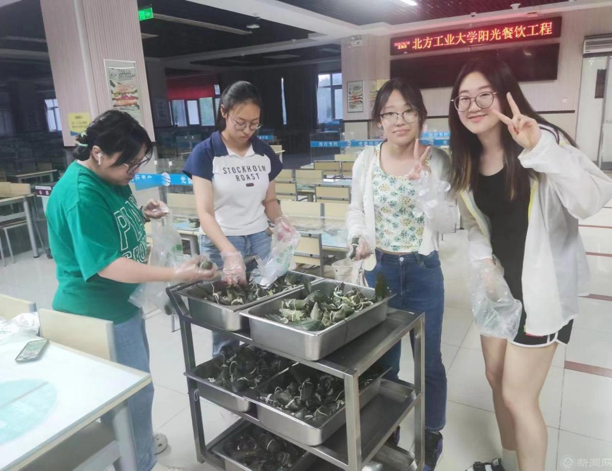 这堂别开生面的劳动教育课由知识讲解、方法演示、动手实操、质量点评、后厨观摩、成果品鉴等几个环节组成。饮食服务中心的工作人员向同学们讲解了端午节吃粽子的历史起源和节日风俗,说明了各地因饮食习惯不同造成口味上咸粽和甜粽的区别,介绍了不同地域使用的不同馅料,详细讲解并示范了包粽子的具体步骤。