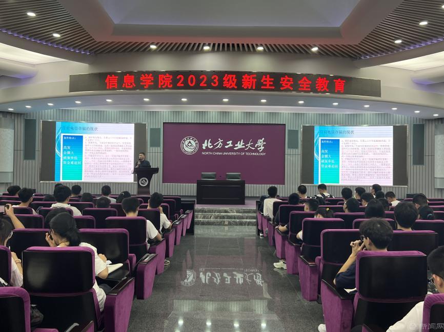 为提高学生的防诈骗意识,利用新生开学季有利时机,9月11日晚,信息学院组织电子信息工程、通信工程、大数据、微电子专业近330余名本科新生参加防范诈骗安全教育讲座,会议邀请安稳处刘有宝老师做了防范诈骗的报告,由辅导员崔怡冉主持。