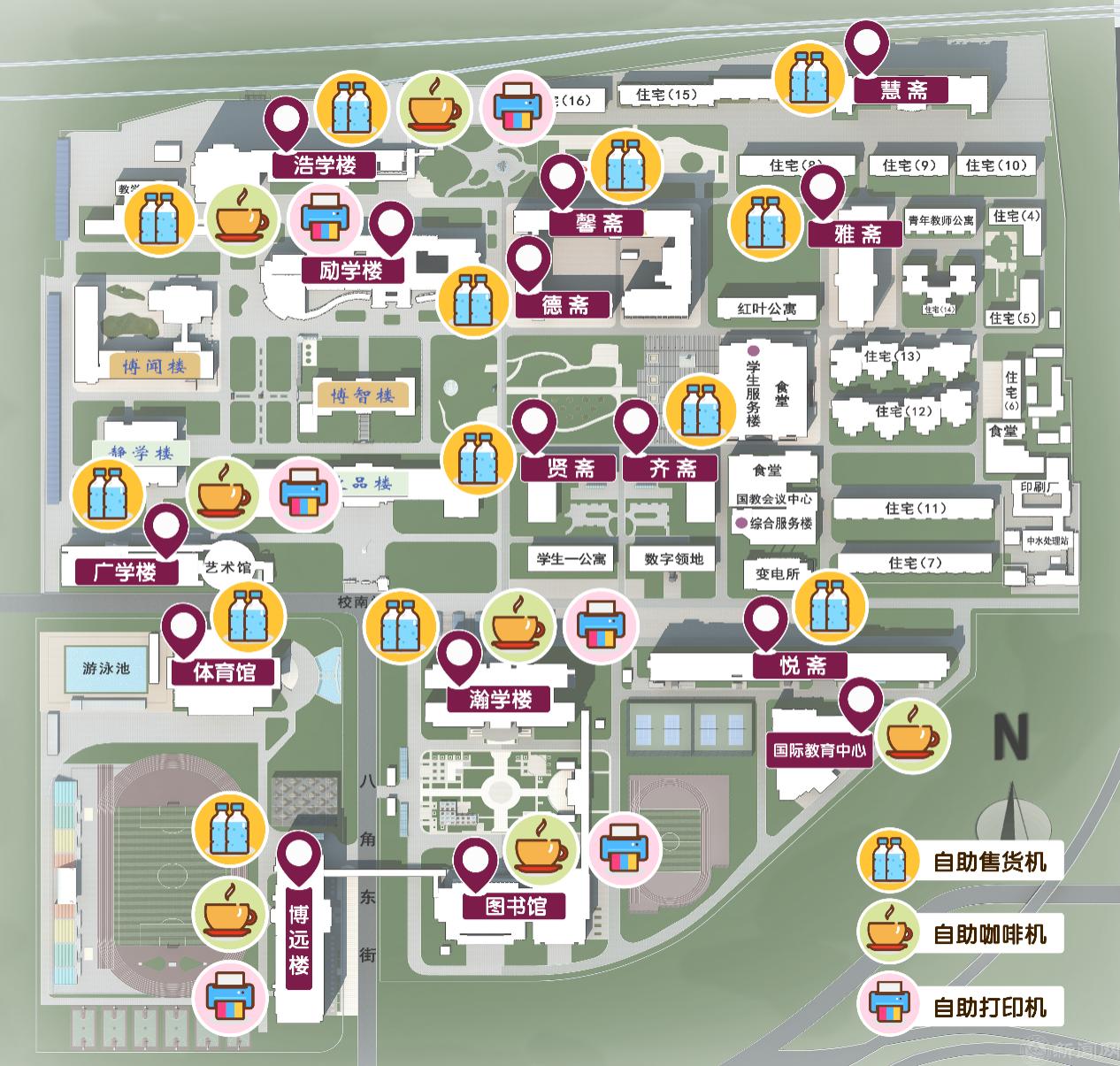 自助售货机提供了多种商品选择,包括饮料、方便食品等,还可提供自助打印服务。售货机具备智能管理系统,能够自动通知后台及时补充货物,确保商品的及时供应。同时,学校也将加强对售货机的管理和维护,确保其正常运行和食品安全。