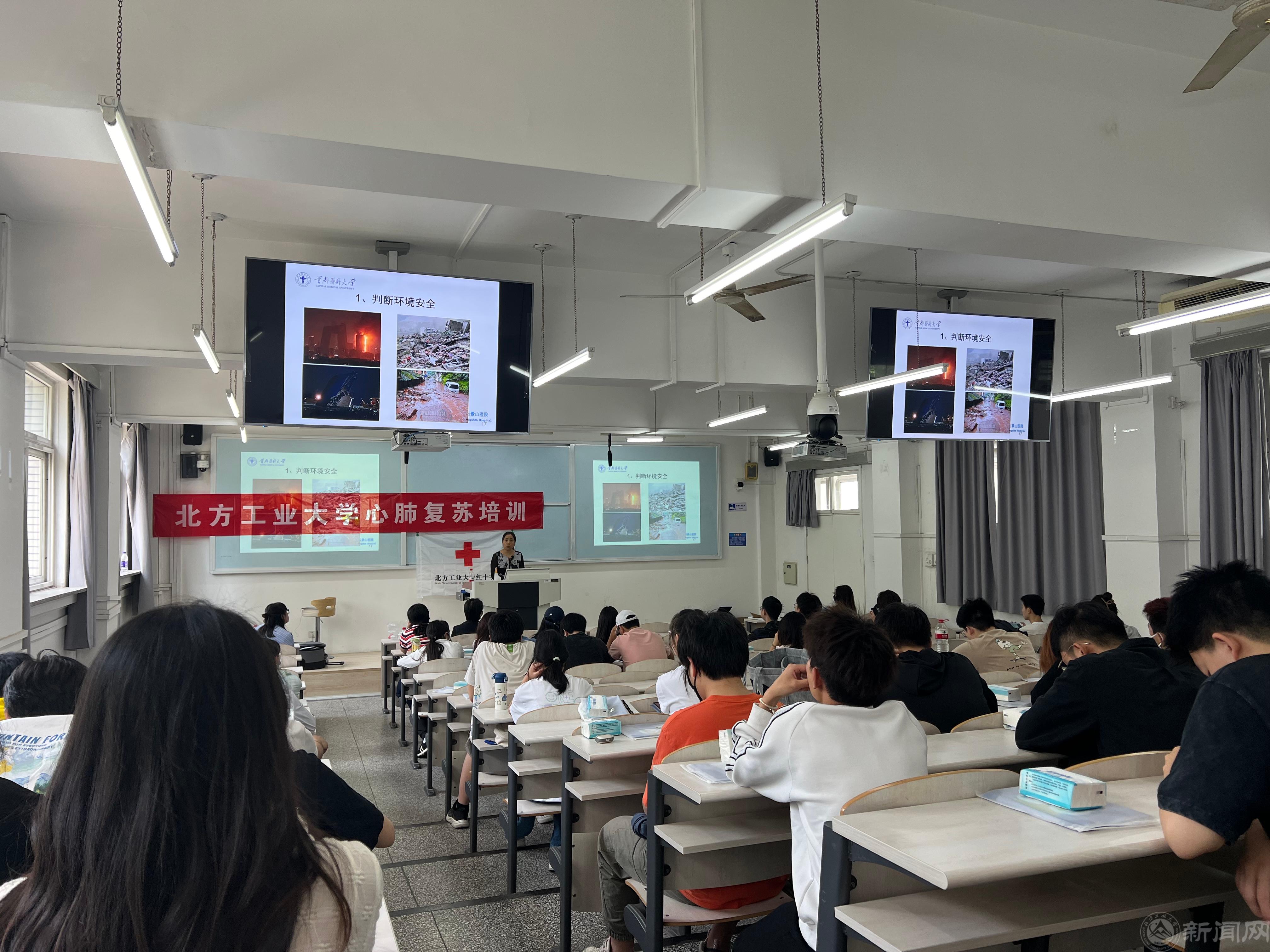 为稳步推进365官网急救试点教育校的建设工作,5月9日,校医院联合石景山医院及学工部在励学楼举办了大学生心肺复苏培训,近百名学生积极参与。
