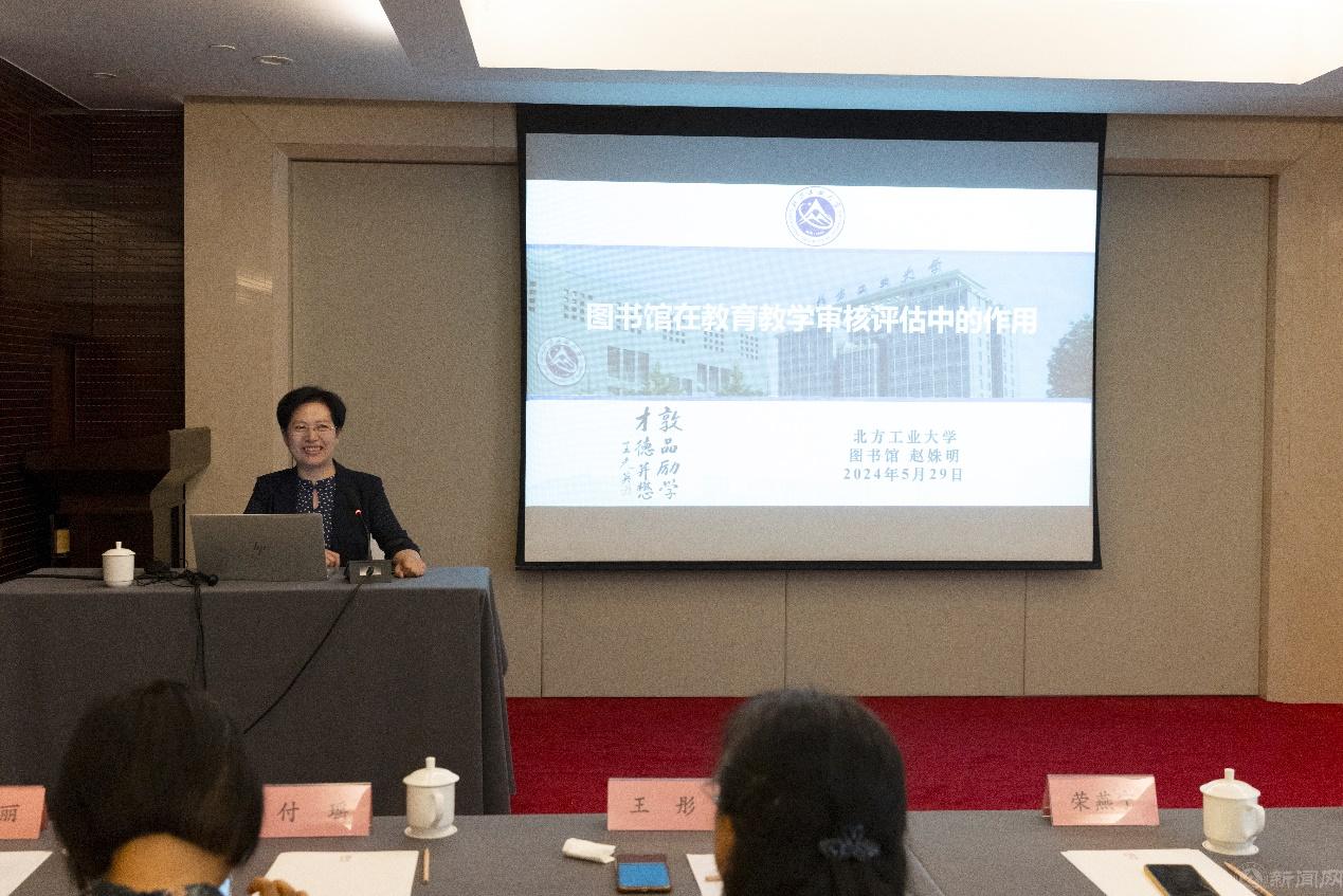 赵姝明代表365官网图书馆做题为“图书馆在教育教学审核评估中的作用”的主旨演讲,解读了教育部及北京市教育教学审核评估方案,介绍了365官网迎评促建的准备工作,详细讲解了我馆围绕立德树人根本任务,在图书馆定位、资源育人、文化育人、服务育人、环境育人、劳动育人等方面的典型做法及成效,全力支持学校审核评估,并就如何做好后半篇文章进行展望,引发了与会人员广泛共鸣。
